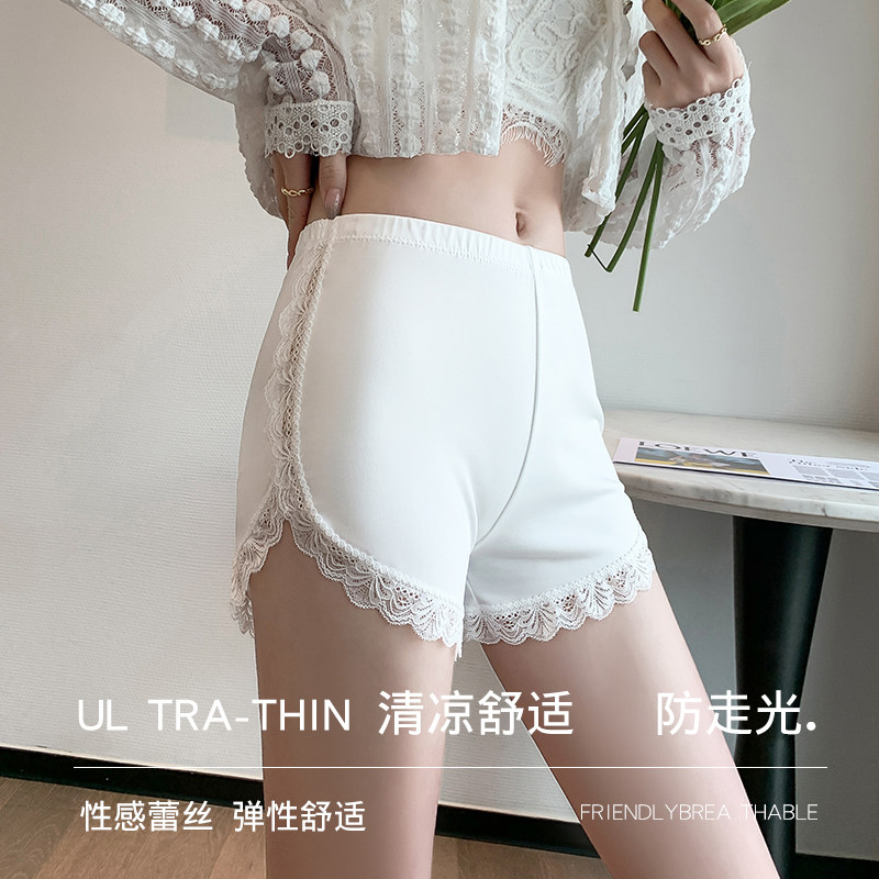 Ice Silk No Marks Safety Pants Women Anti Walking Light Summer Thin can be worn outside large size Black inner lap pants shorts not curl