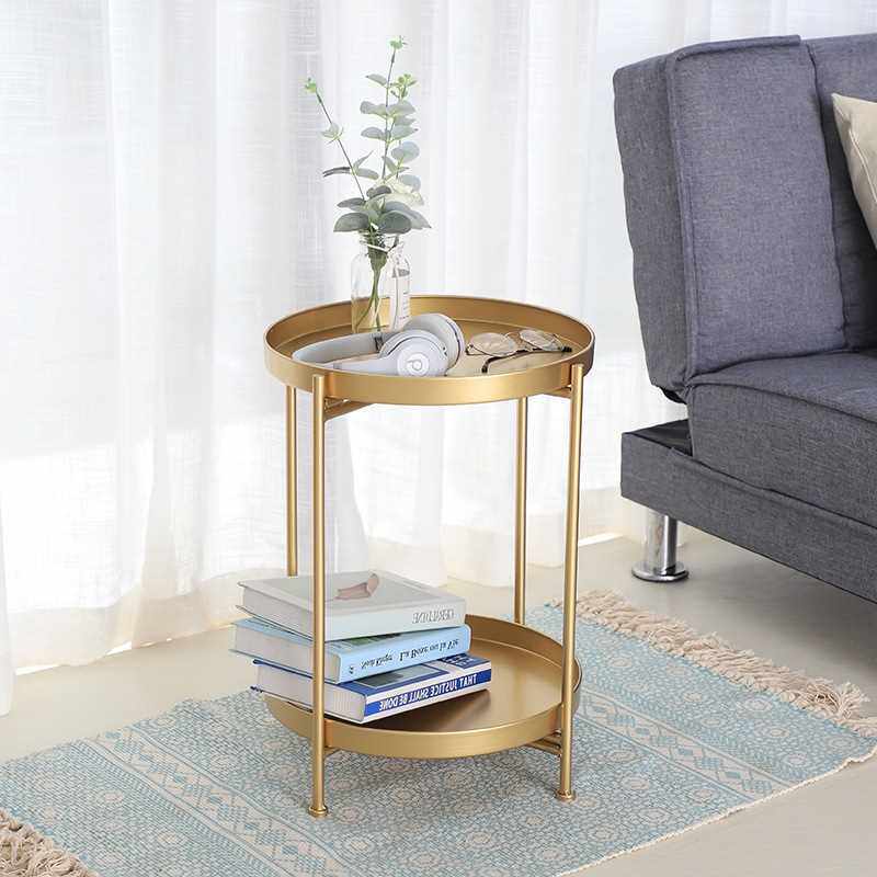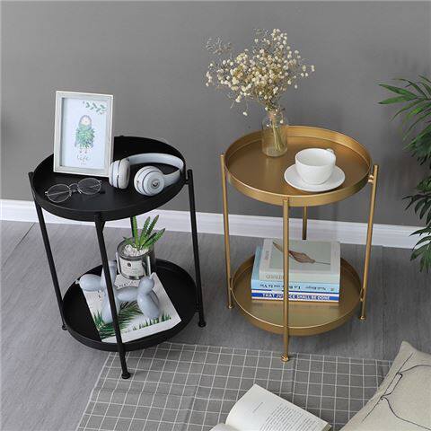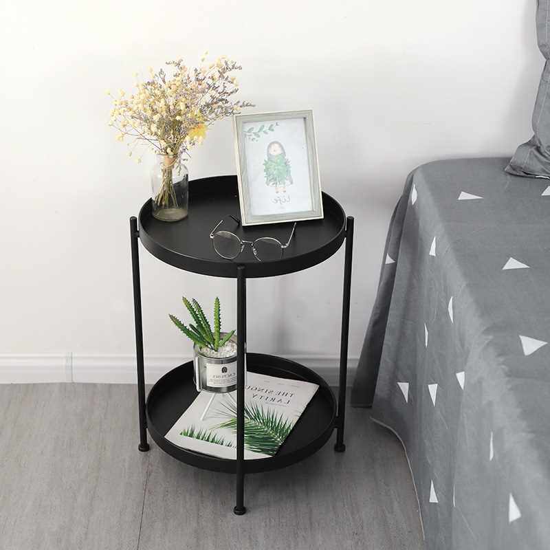 ins Nordic iron art double layer small tea table minimalist creative round side table balcony living room sofa corner a few sides a few