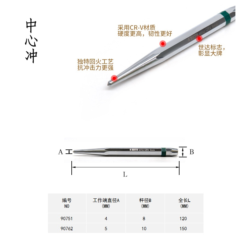 Shida SATA hardware tool center punching bit positioning punching punch 4 industrial grade 5mm high hardness gun