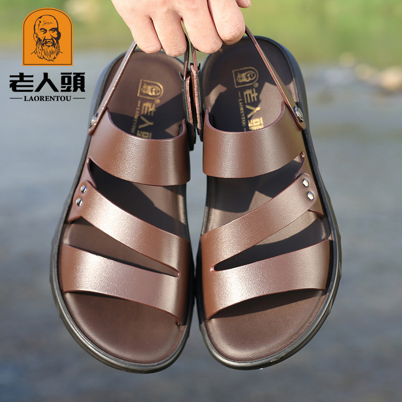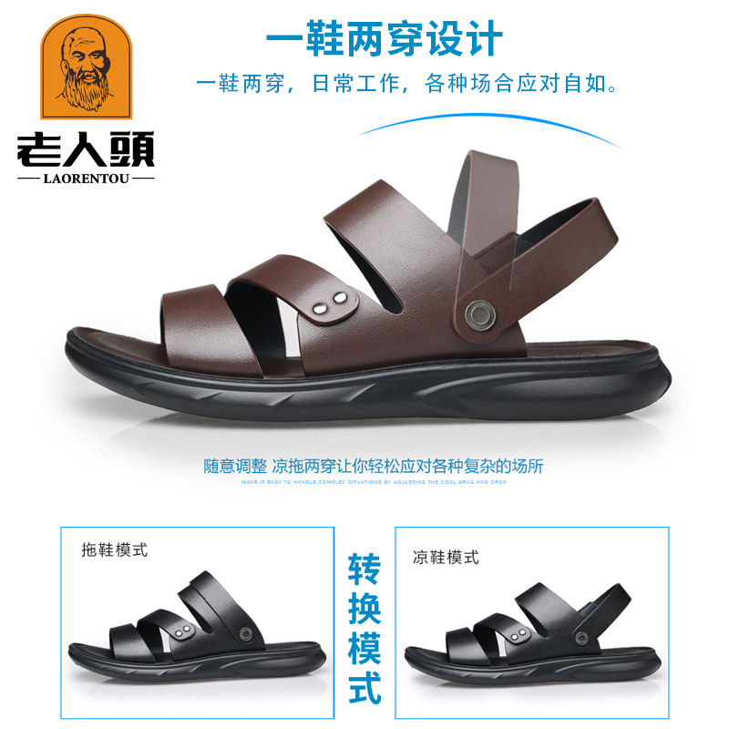 Old man's head sandals men's summer new leather casual beach shoes Breathable Leather Sandals Shoes Non-slip Soft Underfloor Sandals Shoes Male
