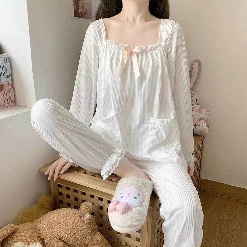 Chaoshan Jieyang Pajamas Women's 2022 New Spring and Autumn Thin Section Pure Cotton Round Neck Ladies Sweet Princess Style Homewear