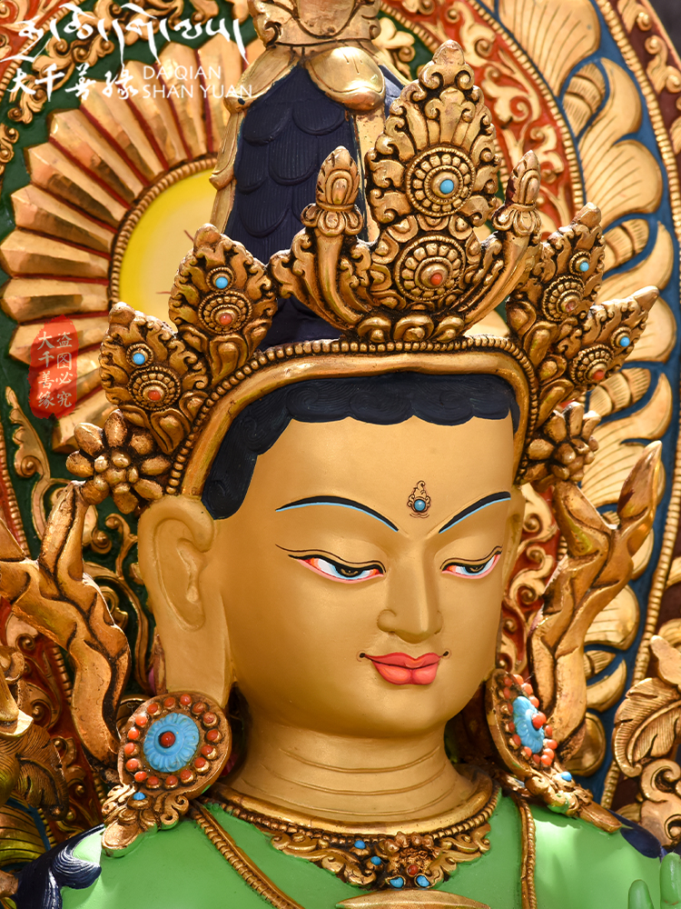 Sakya statue statue of Nepal pure handmade 61cm painted green Mother BodhisattBodhisattva Buddha hidden in a 20 inch bronze statue