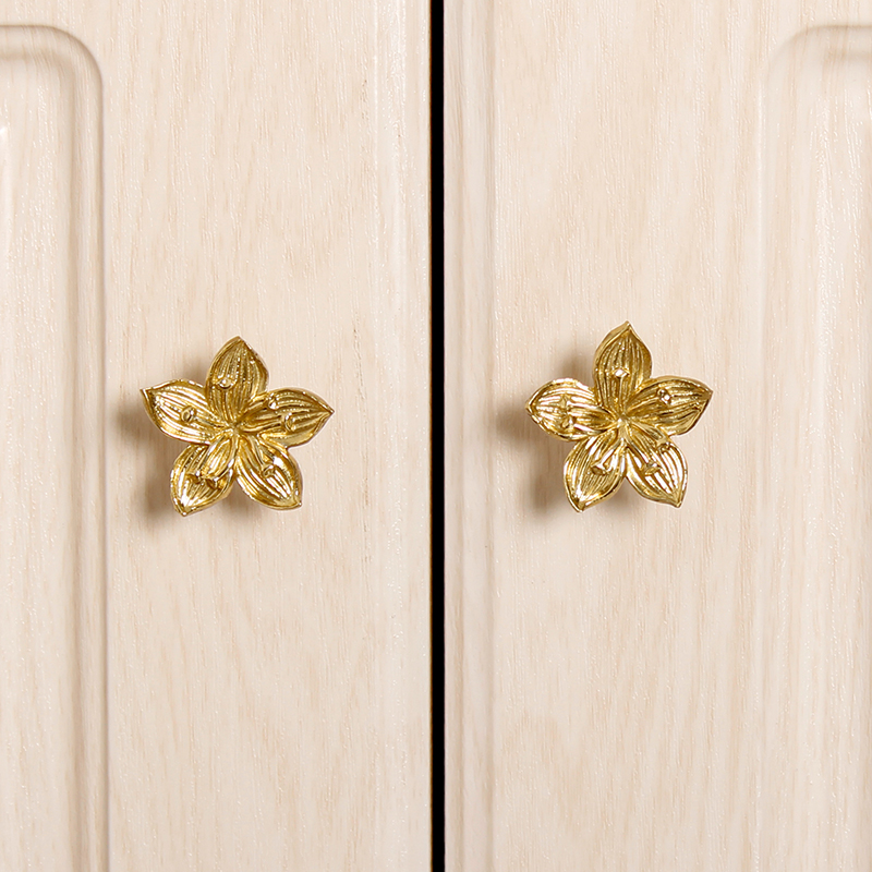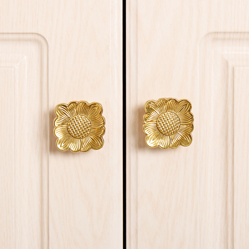 Eurostyle Rose Brass Handle Light Lavish Retro Flower Butterfly Blue Drawer Wardrobe Door Sunflower Single Hole Handle