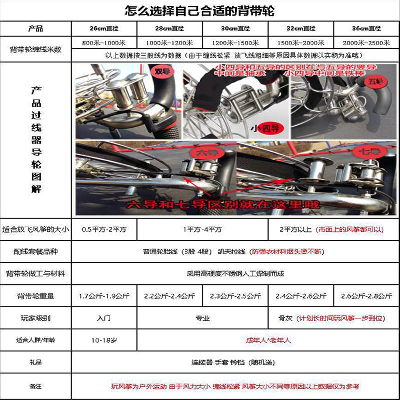 26cm four guides-with brakes (excluding wires) one size 26cm five guides-with brakes (excluding wires) one size 26cm-seven guides-with brakes (excluding wires) one size 28cm five guides-yes