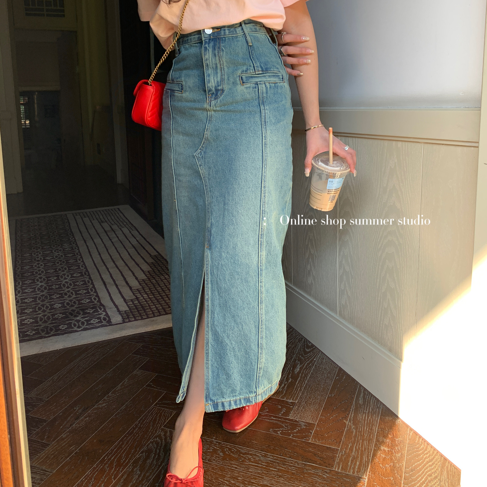 Summer House 2023 Spring 2023 new retro cowboy skirt long - term pre - open design