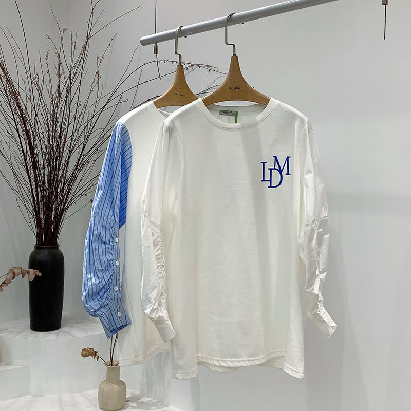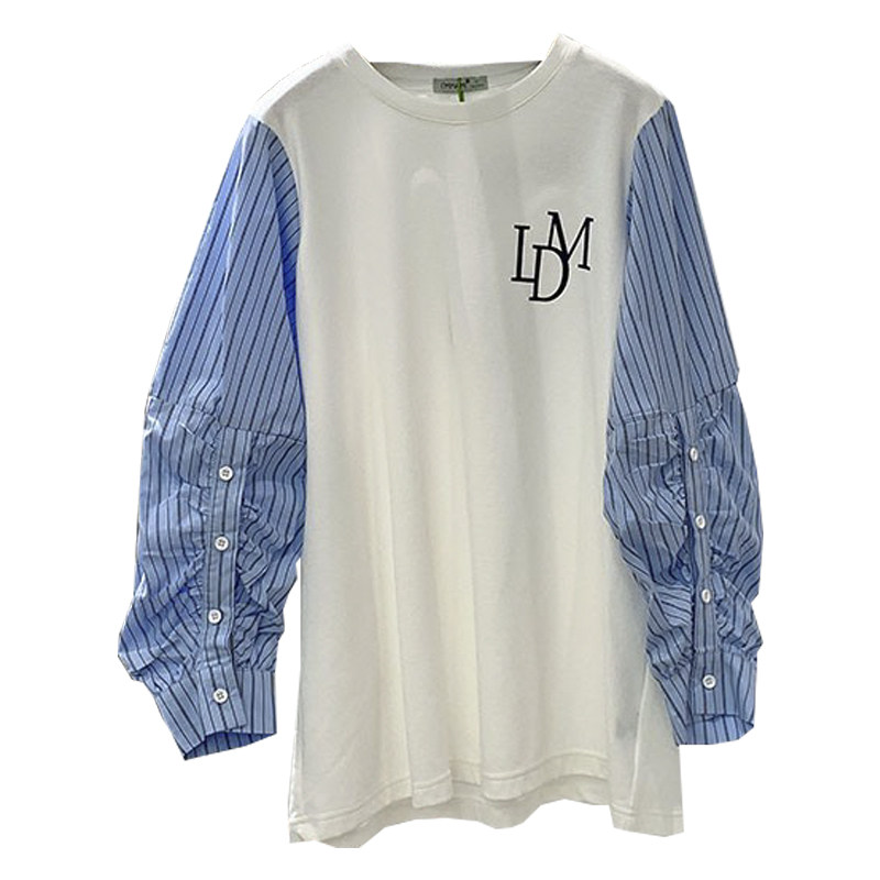 Gestational Maternity 2022 Chun-style t-shirt with long fake two pieces of casual stripe splicing Aimeimommy loose fashion blouse