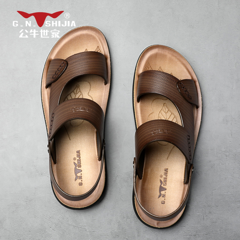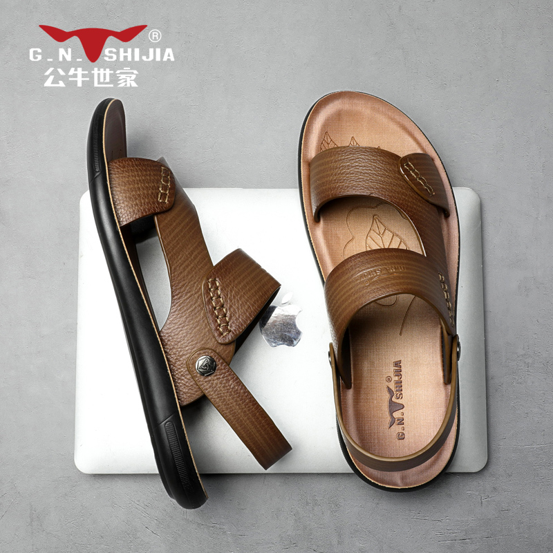 Bull World Family Leather Sandals Men Genuine Leather 2022 New Summer Outwear Casual Dual-use Sandals Men Beach Shoes