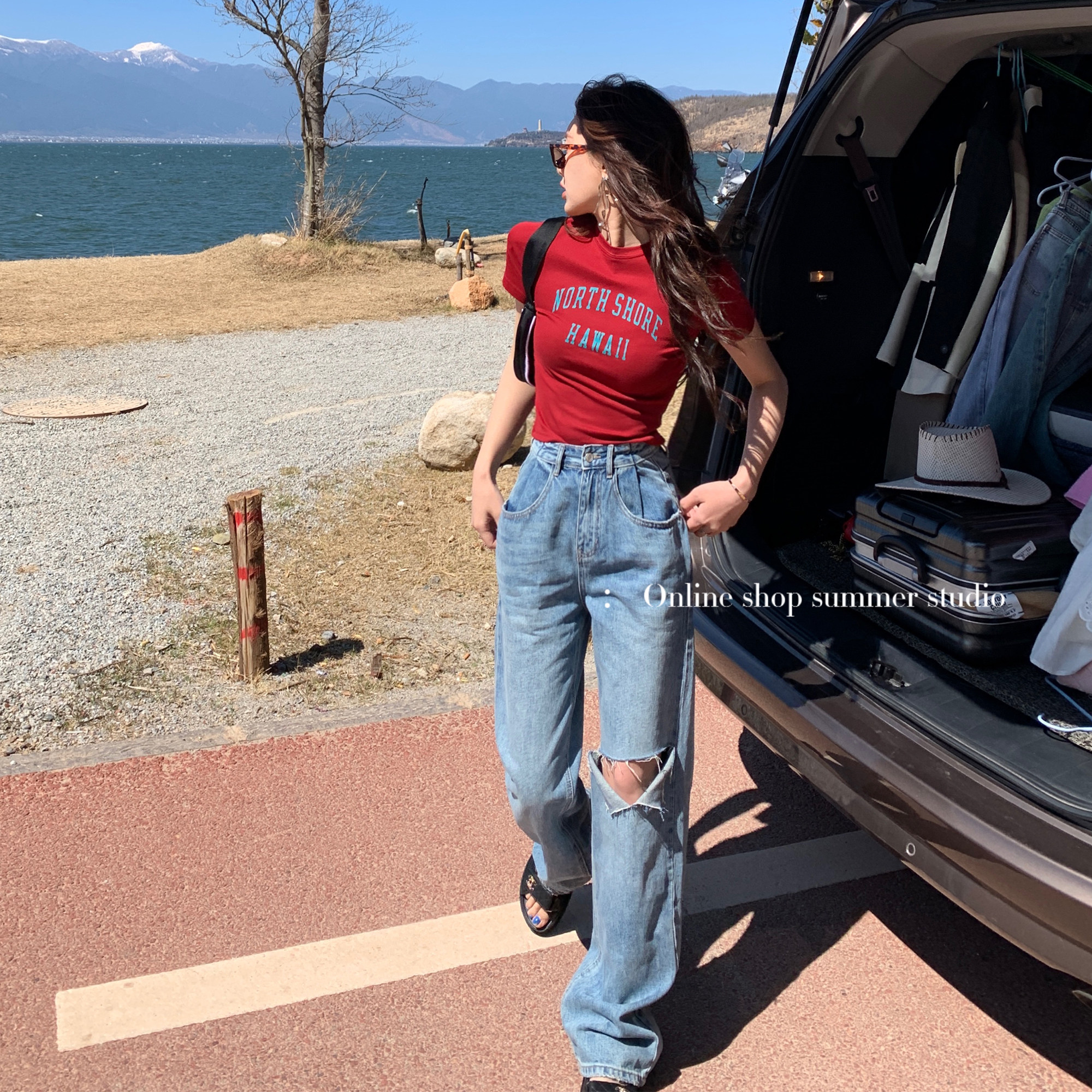 Summer home pink short sweet spicy top slim American retro hot girl short-sleeved t-shirt female 2022 summer new