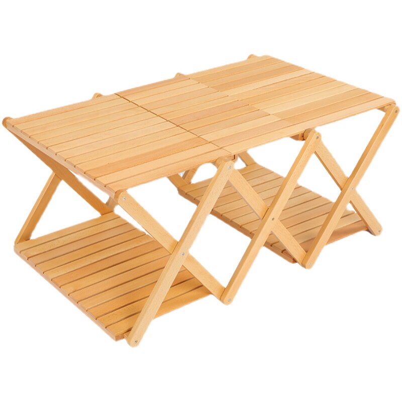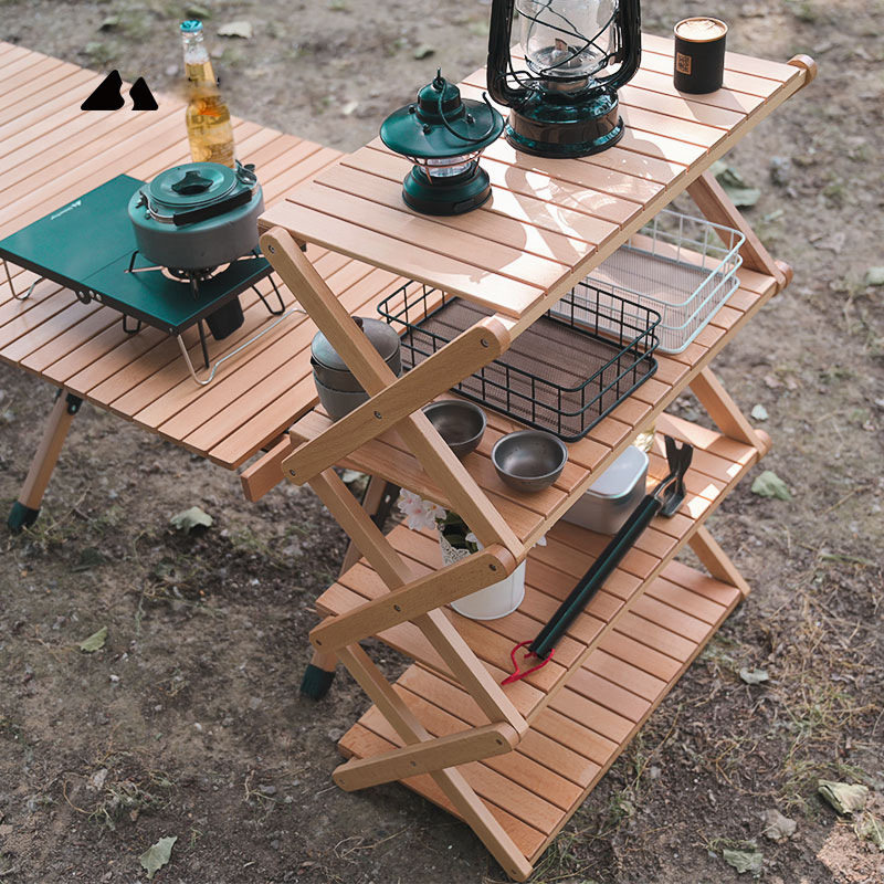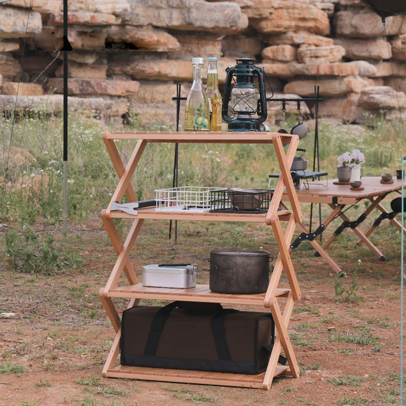 Fast Line Guest Folding Multilayer Shelve Outdoor Camping Portable Shelve Wood Picnic Cutlery Rack Containing Table