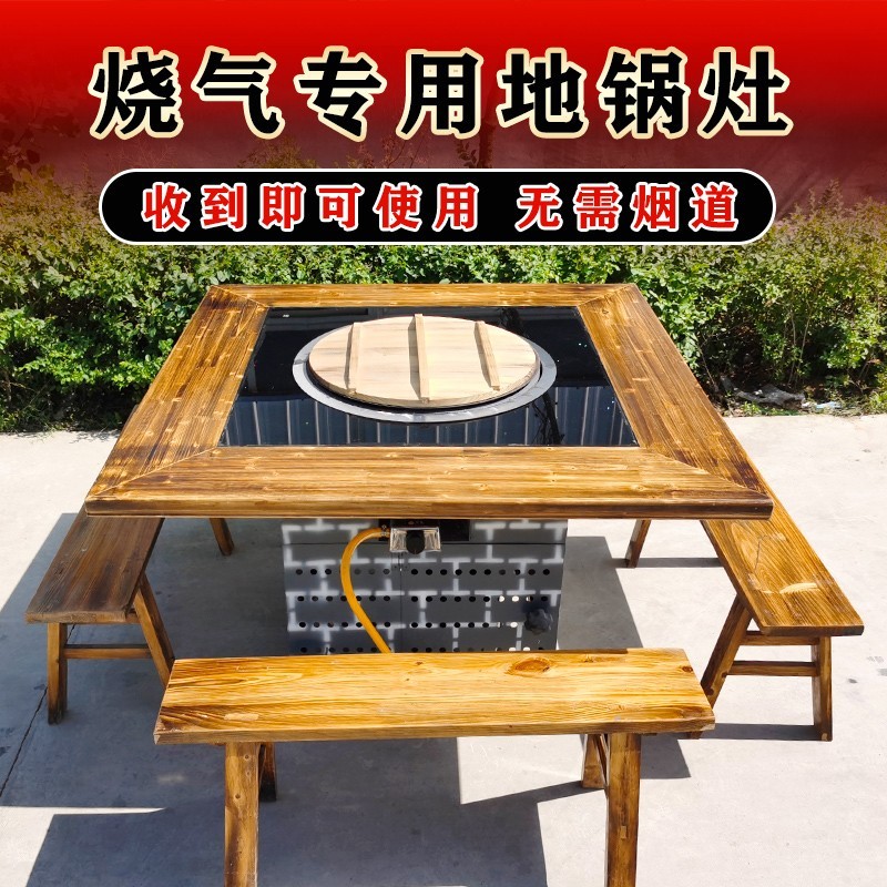 Commercial iron pot stew Kamadai table burning gas firewood turkey ground pot chicken special Kamado restaurant indoor smokeless hot pot table