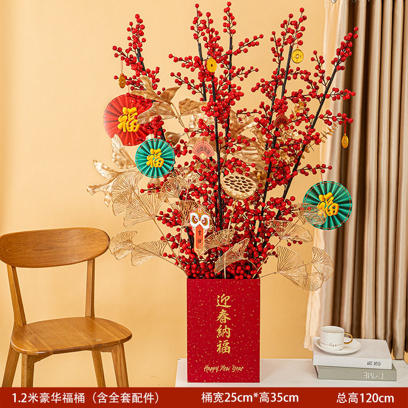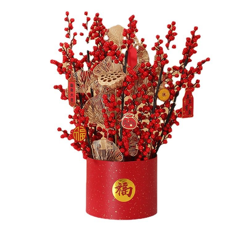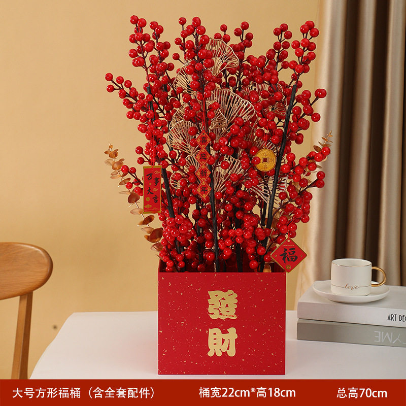 Boutique-Small Red Ingot Shaped Bottom Prosperous Bucket Red Fruit Tree Gold Coin (50cm) Red Fruit Tree Gold Coin (60cm) Red Fruit Tree Fortune Character (50cm) Fortune Red Fruit Tree (