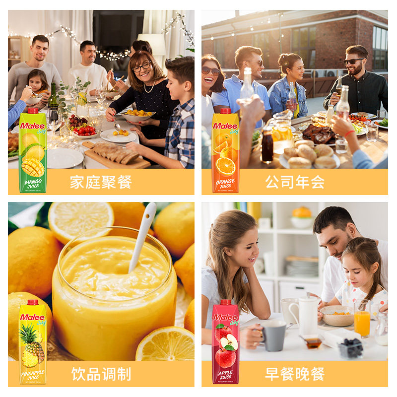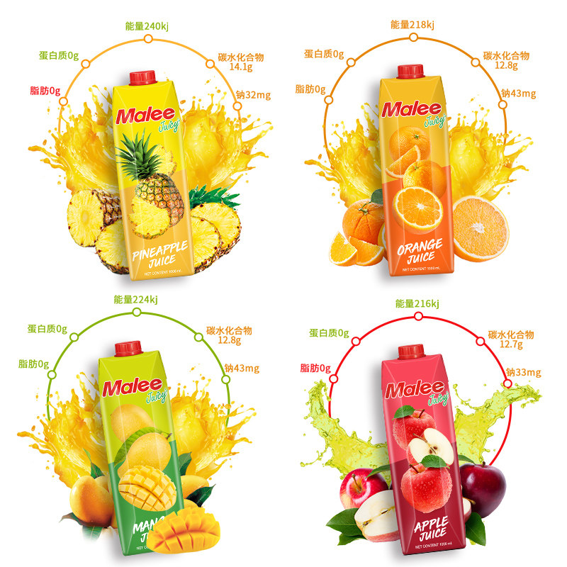 Thailand imported Mary malee orange juice pineapple mango apple passion fruit juice drink 1L*4 large bottle concentrated