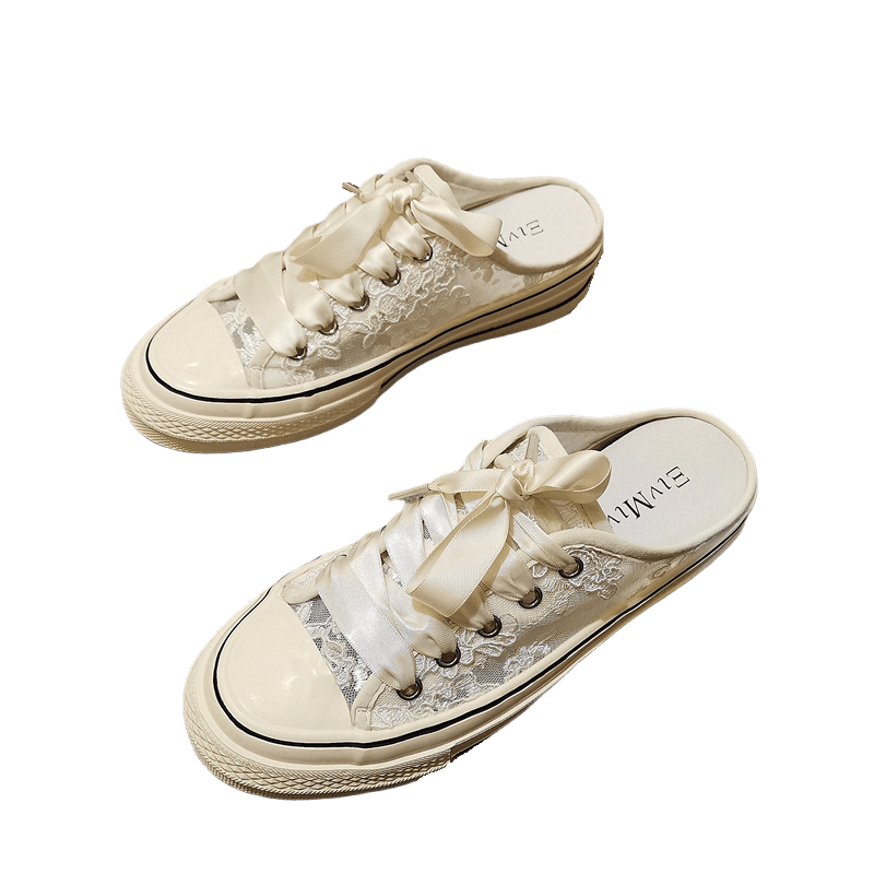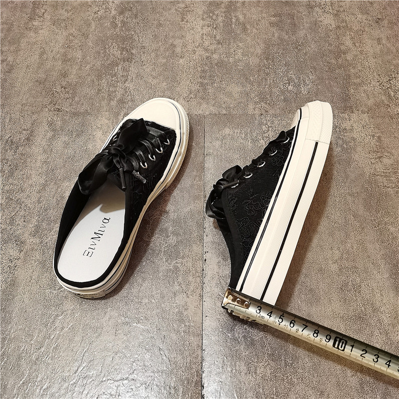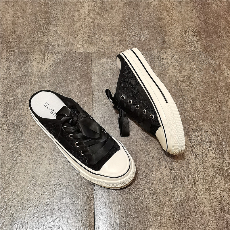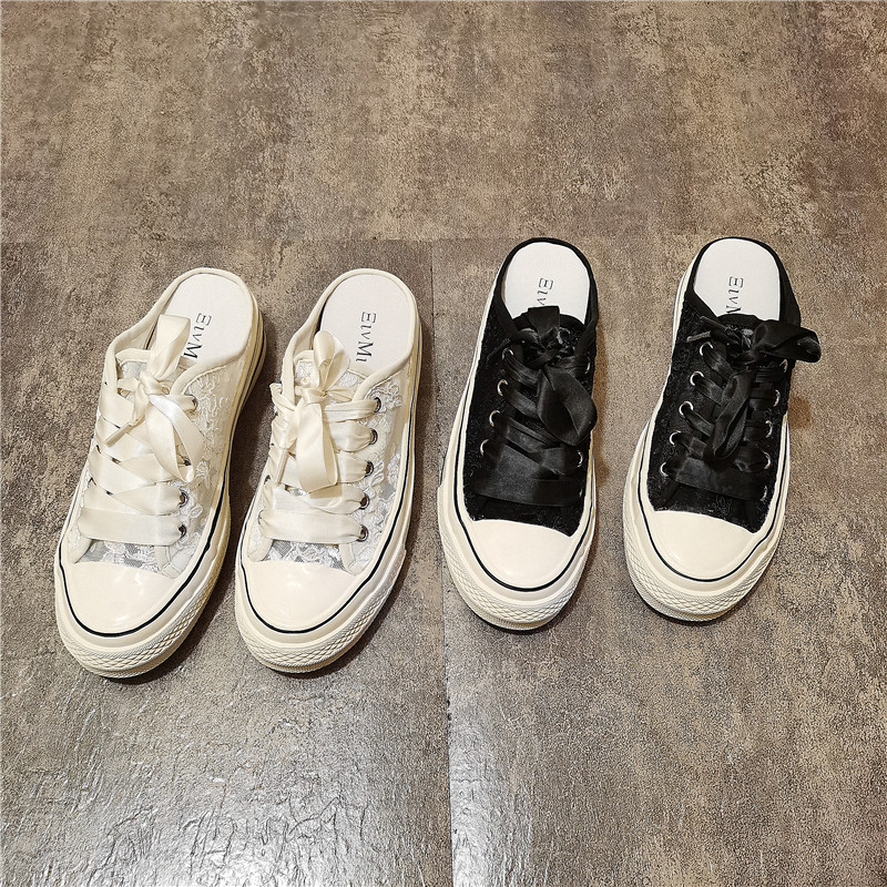 Air sensation ~ Summer breathable Baotou slippers Female outside wearing 2022 new sexy lace sloth half towing little white shoes