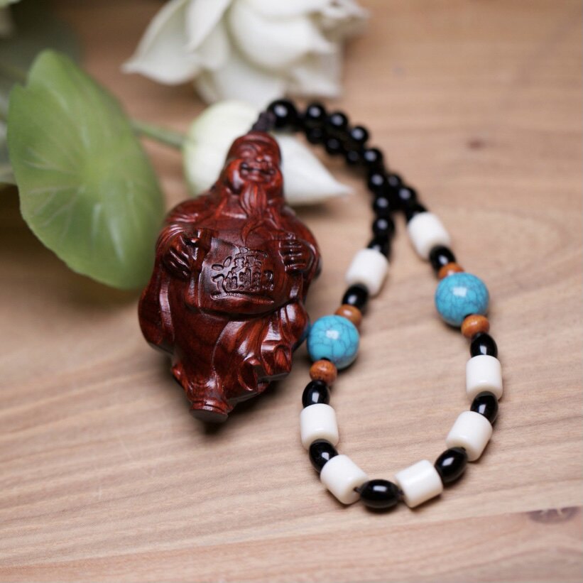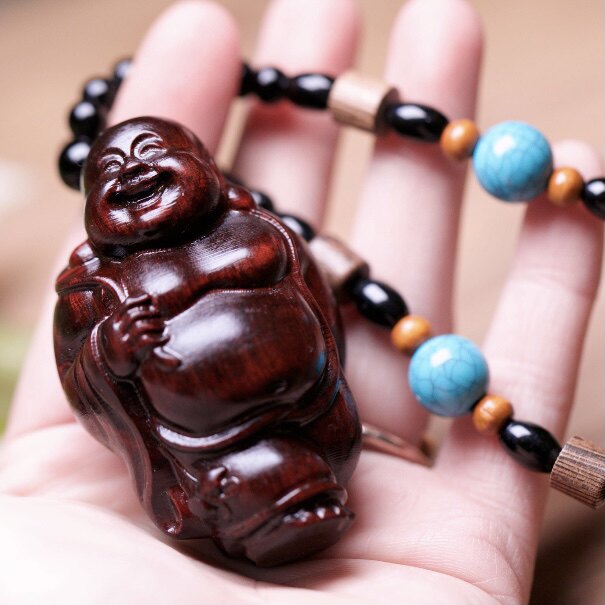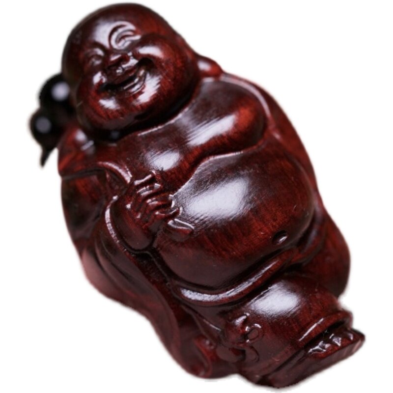 Boutique red sandalwood mahogany carving God of Wealth Maitreya Buddha pendant handle pieces car ornaments carry-on disk to play