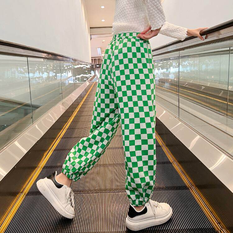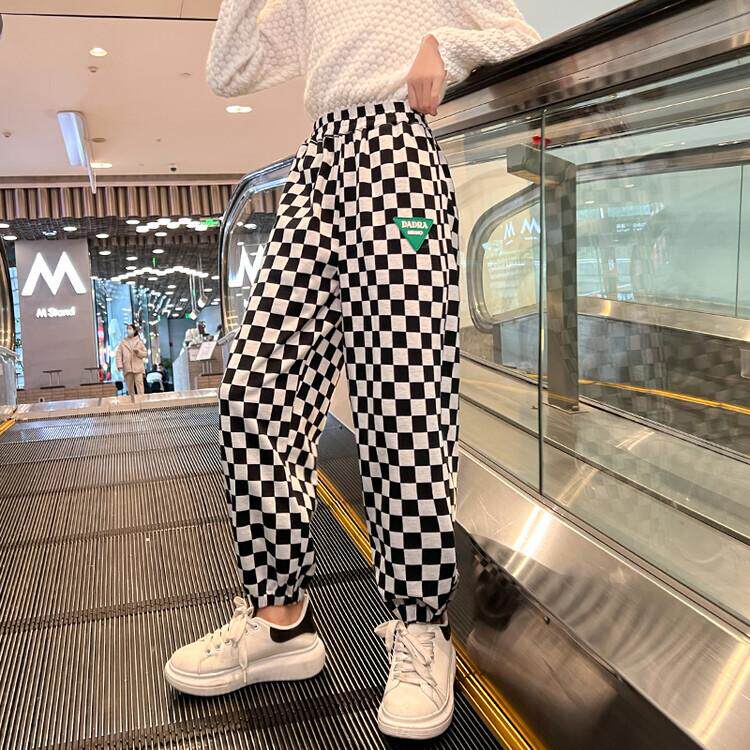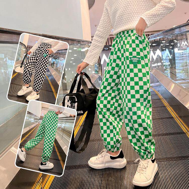 Girls Spring and Autumn Sports Casual Pants 2022 New Children's Girls Checkerboard Plaid Pants Big Children's Cotton Korean Pants