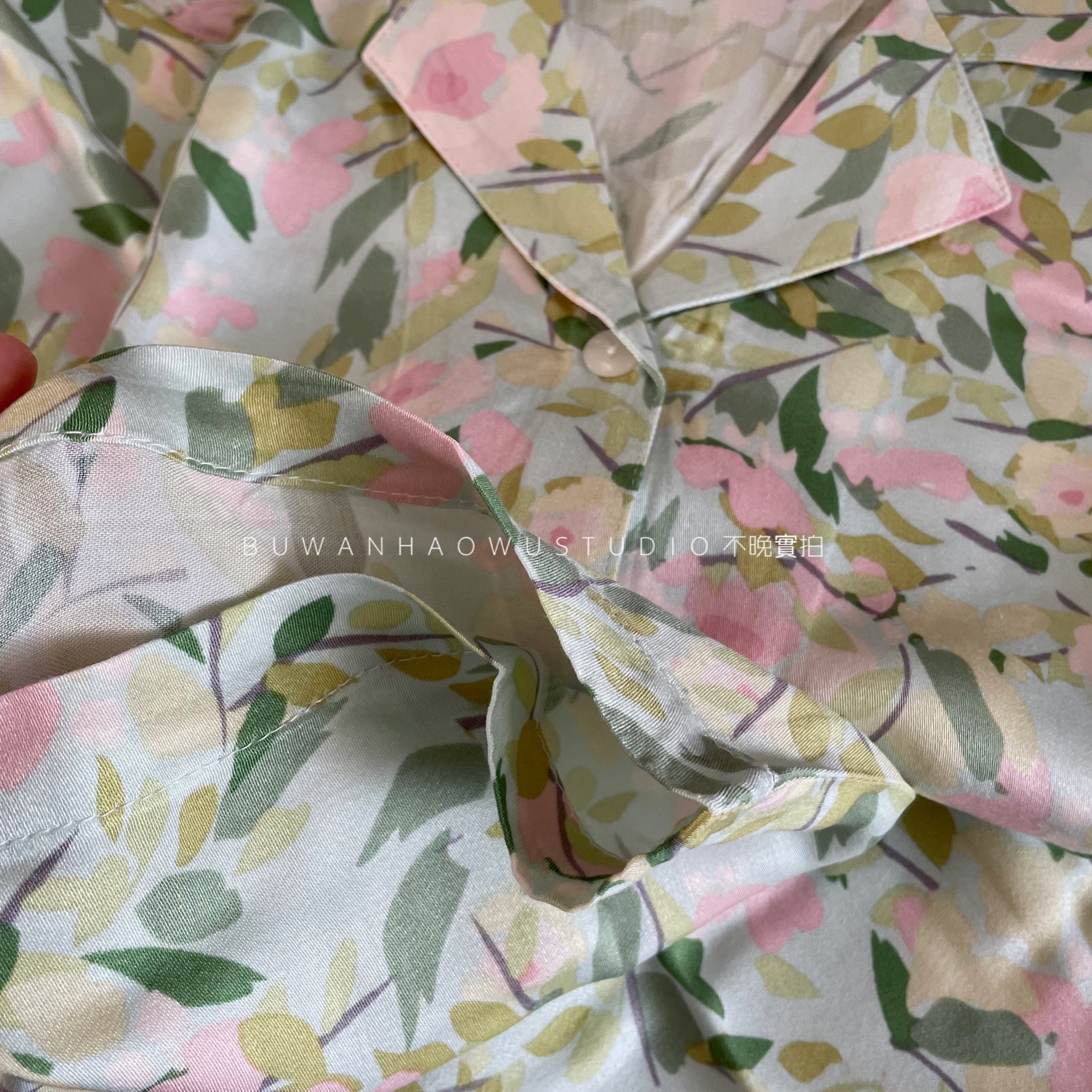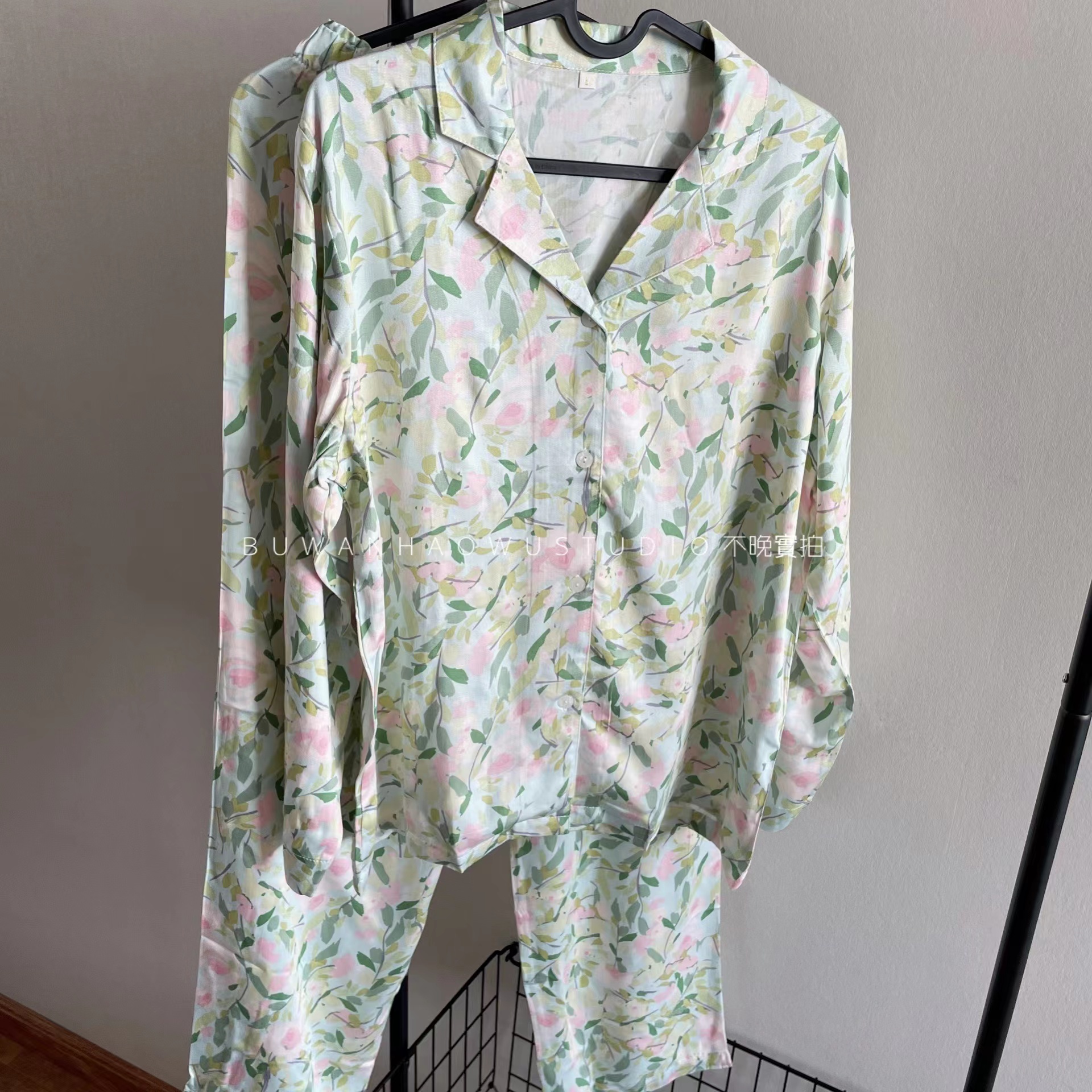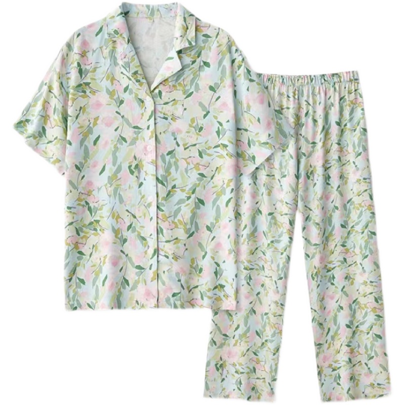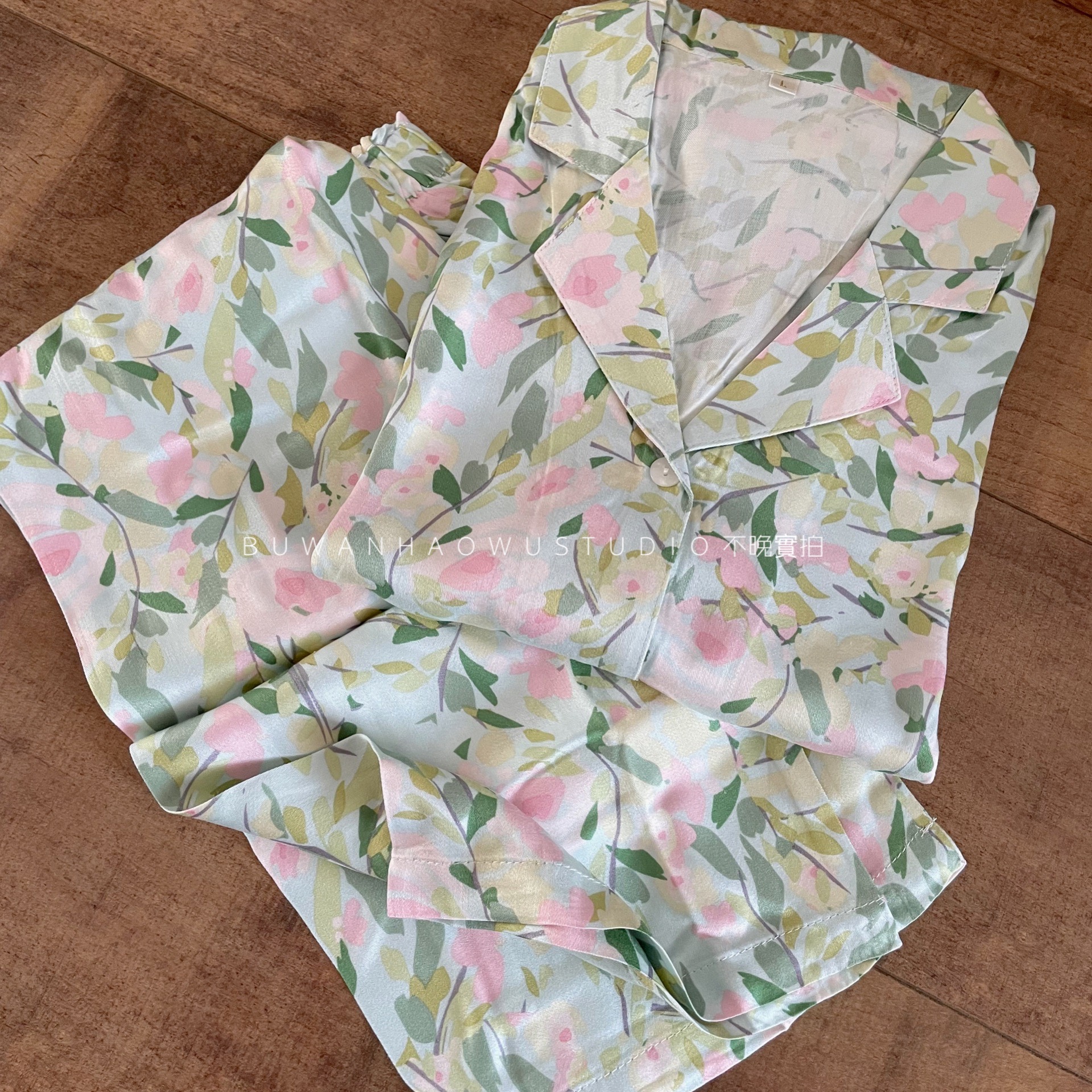 Original single) Foreign trade Green onion years Green Chopped Flowers Minimalist Style Florist cotton Guns satin pajamas home clothes