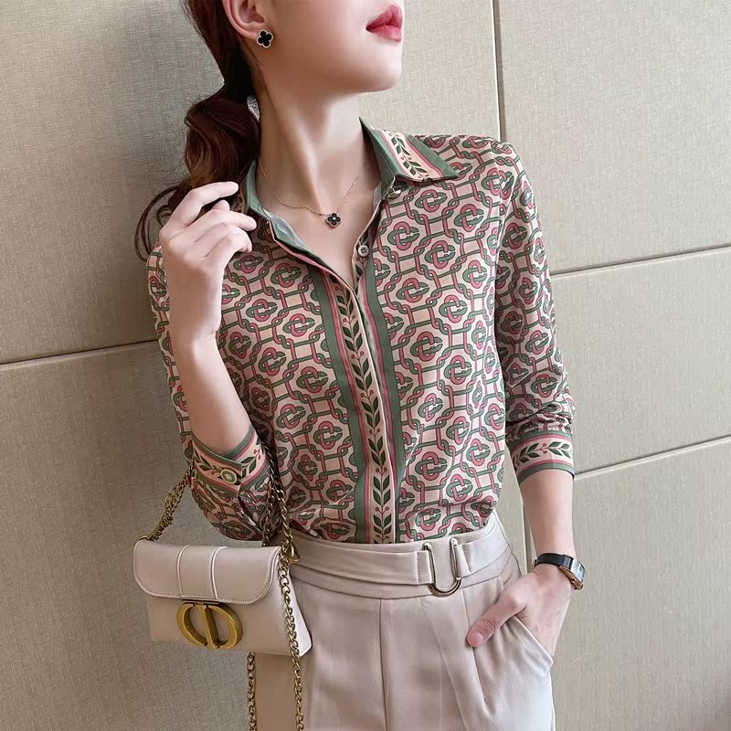 Design and high - end professional OL shirt woman 2022 Spring and Autumn new Han - printed snow - spinning ocean shirt