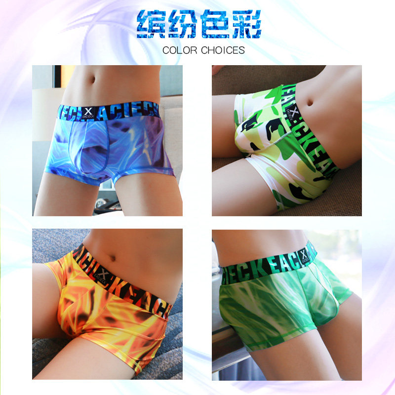 One or two sets of ice silk printed men's underwear trend student sports comfortable loose large size mid-waist boxer trousers