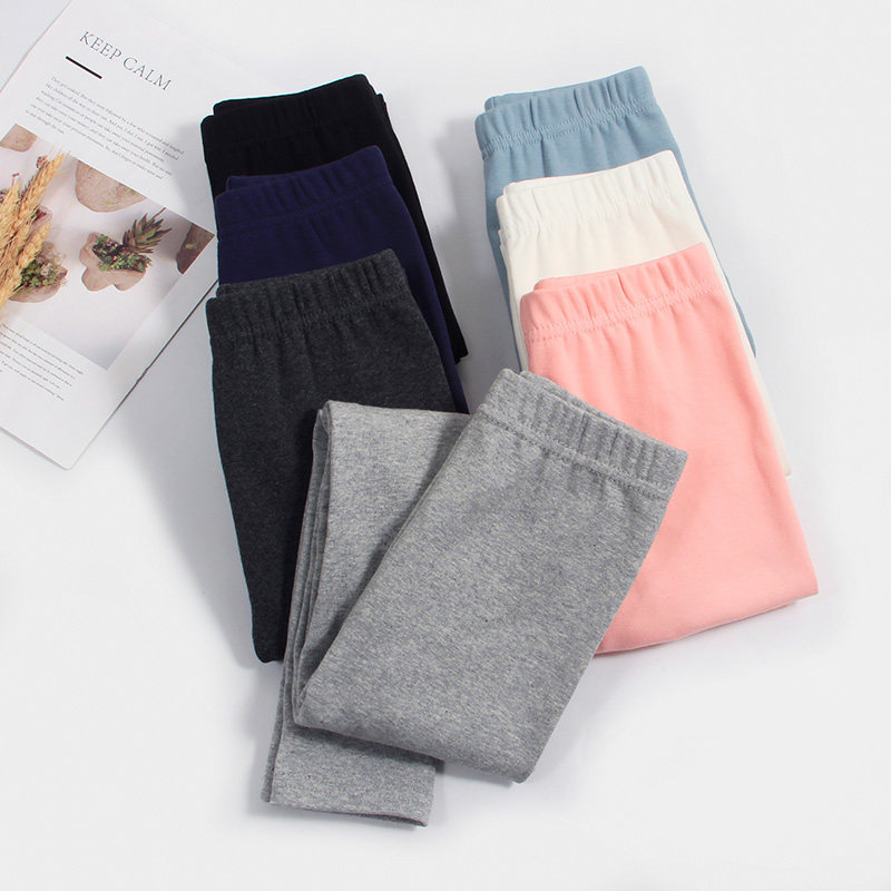 Girls' leggings spring and autumn thin section pure cotton outerwear children's tight trousers in big children's solid color foreign style girl's pants