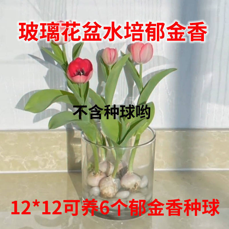 Tulip perfume cultivation container transparent glass flowerpot round narcissus hyacinth white palm green plant vase hydroponic utensils