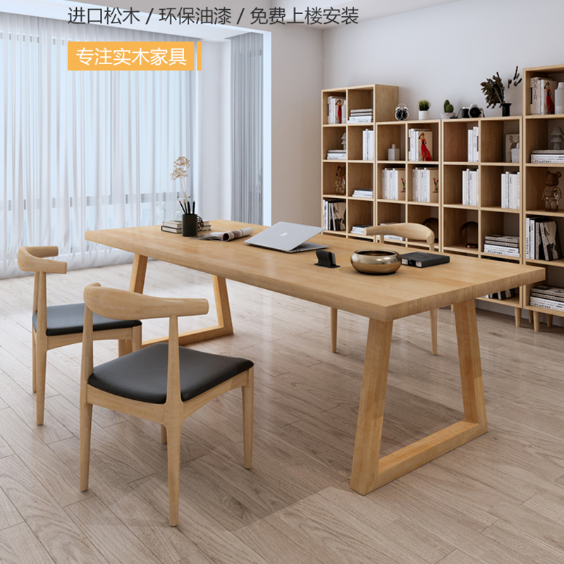 Nordic solid wood conference table long table brief modern desk training desk studio in talks table and chairs combined desk