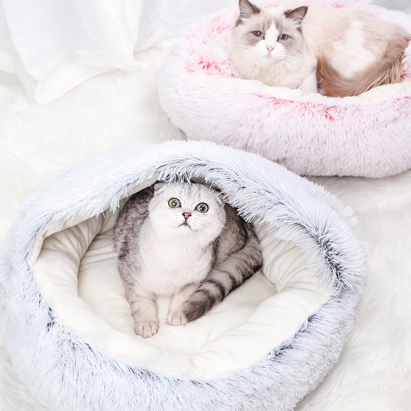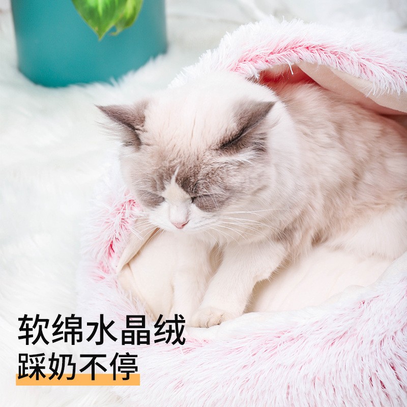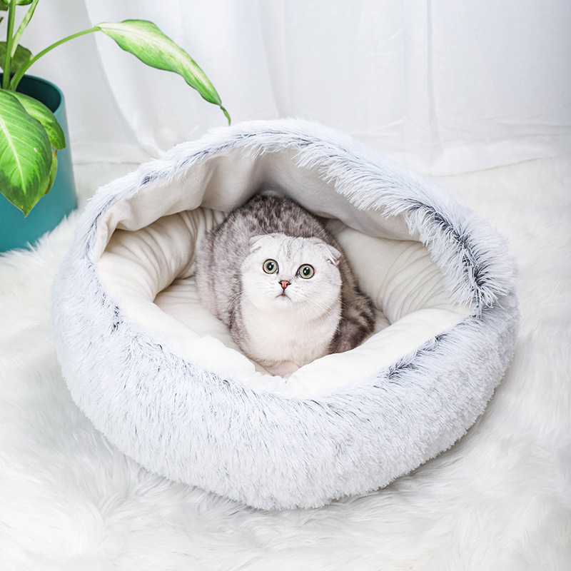 Winter plus suede Thickened Enclosed Cat Cowl Shell Nest Egg Tart Long Plush Warm Cat Nest Small Dog Kennel Pet Nest-Taobao