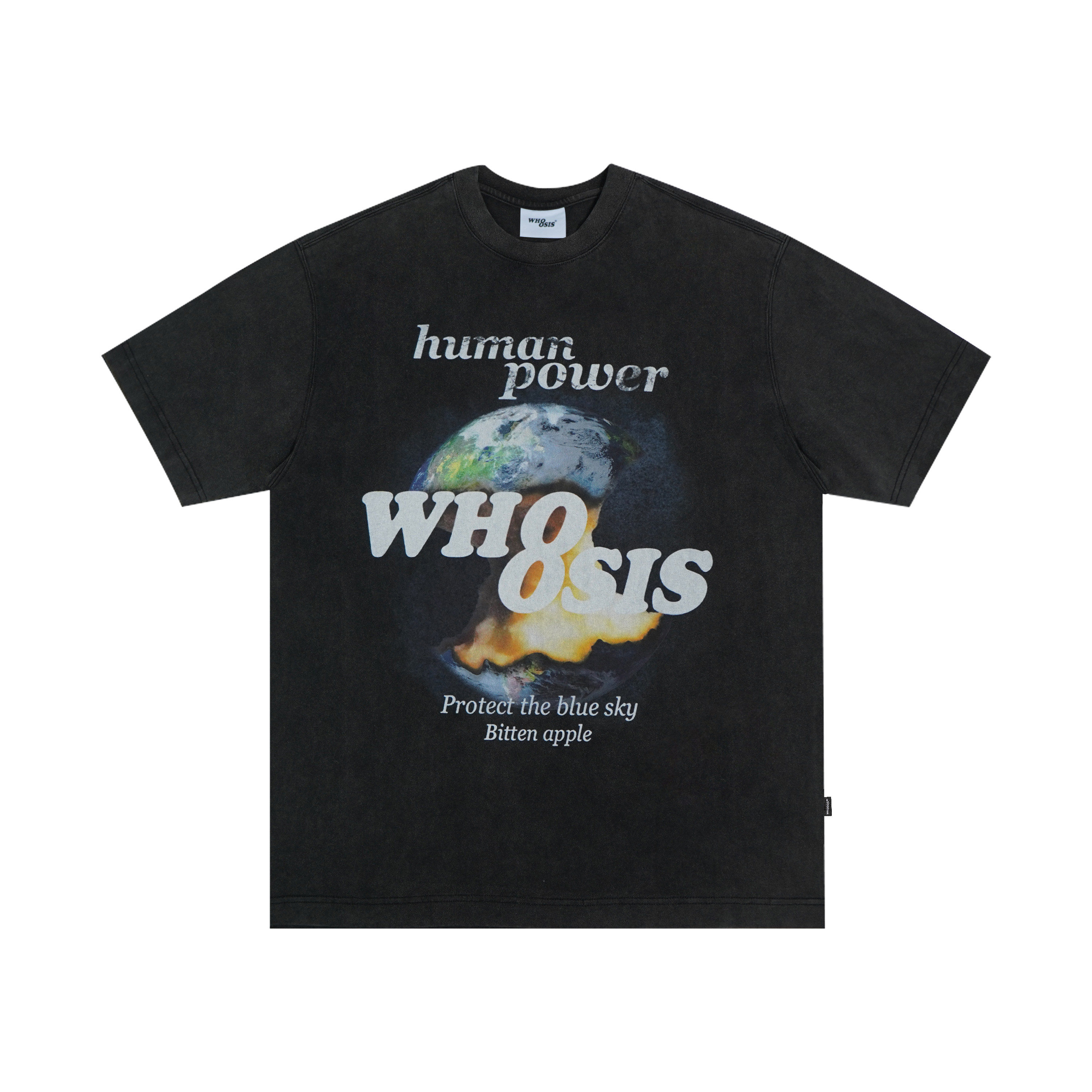 WHOOSIS (not known by name) Missing earth washed short sleeve T-shirt retro street hip hop male couple
