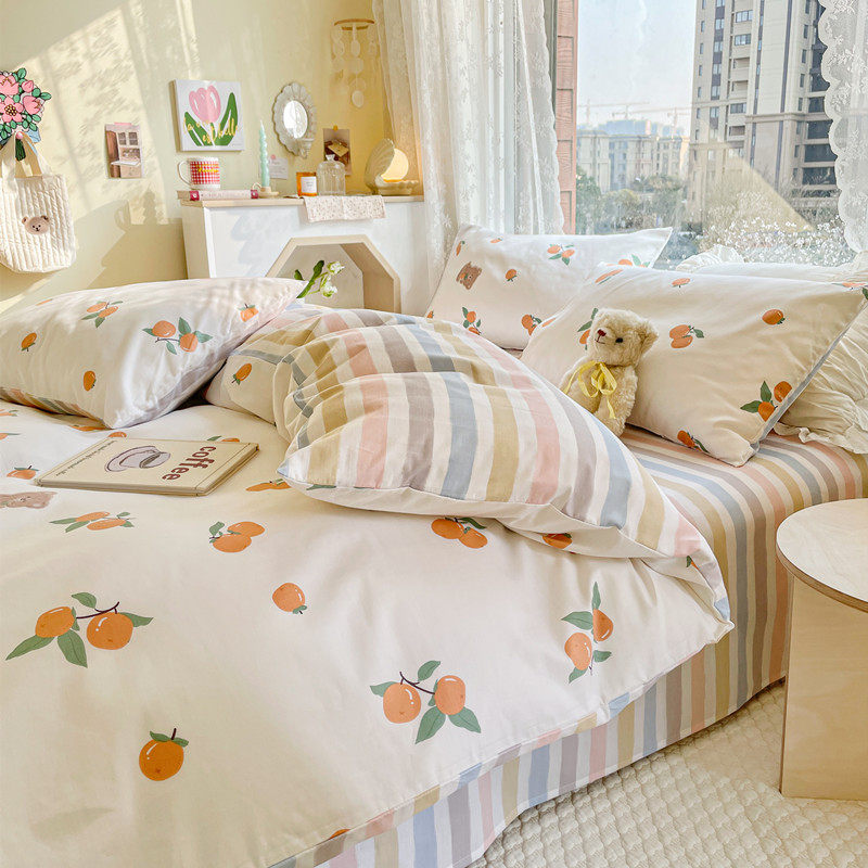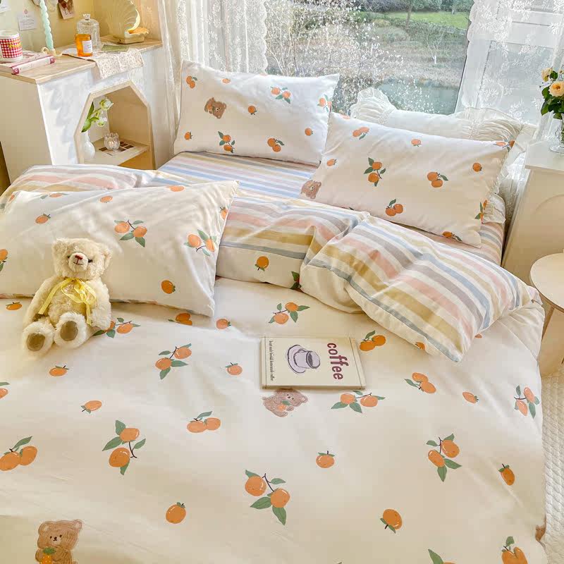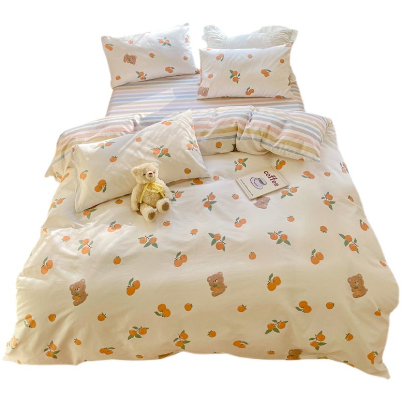 Spring Summer Little Fresh Pure Cotton Four Pieces Brief Teenage Girl Wind 40 Leveled All cotton Korean Department Flower Dormitory Three Sets