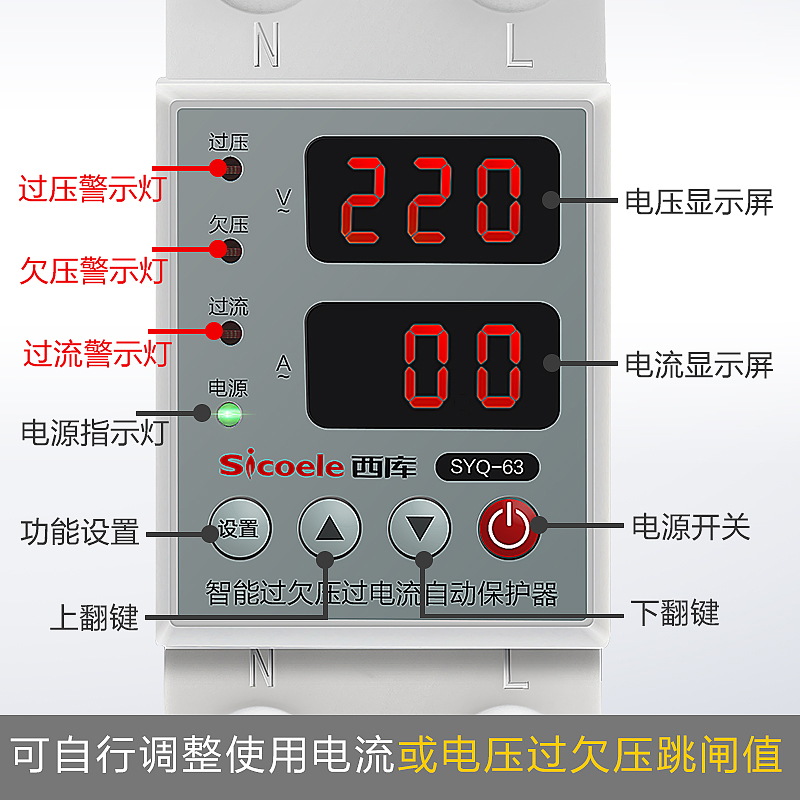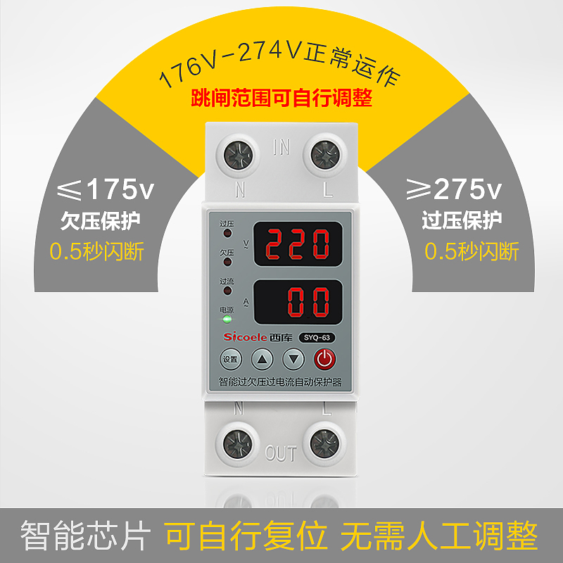 Fully automatic reset over undervoltage protector self-duplex vacuum 220v current overload overcurrent with digital display breaker