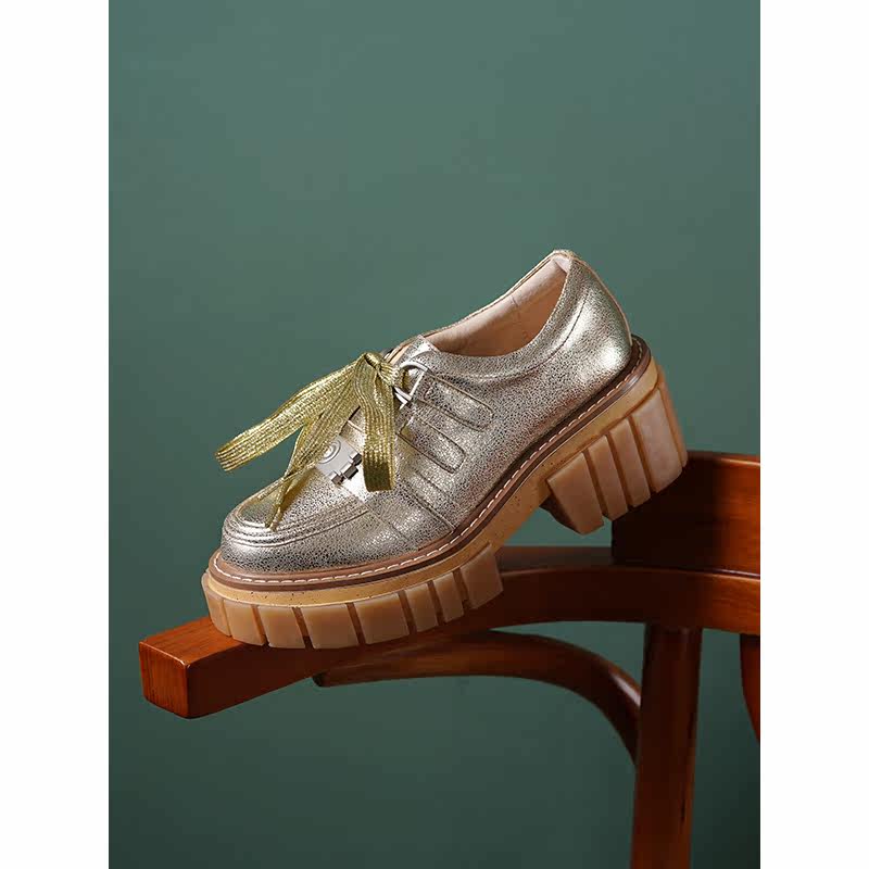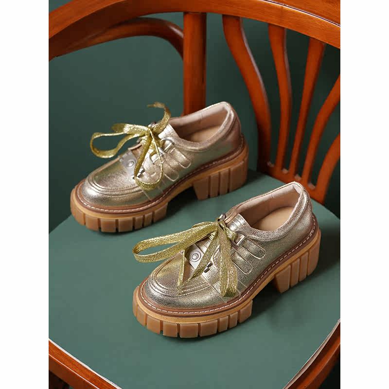 Silver bull skin deep mouth thick sole shoes with 2022 Spring and Autumn new Yang Le Fu shoes high heel gold shoes