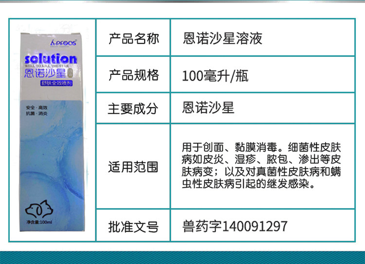 Enrofloxacin skin spray pet cat dog interdigital inflammation allergic dermatitis eczema bacterial pyoderma solution