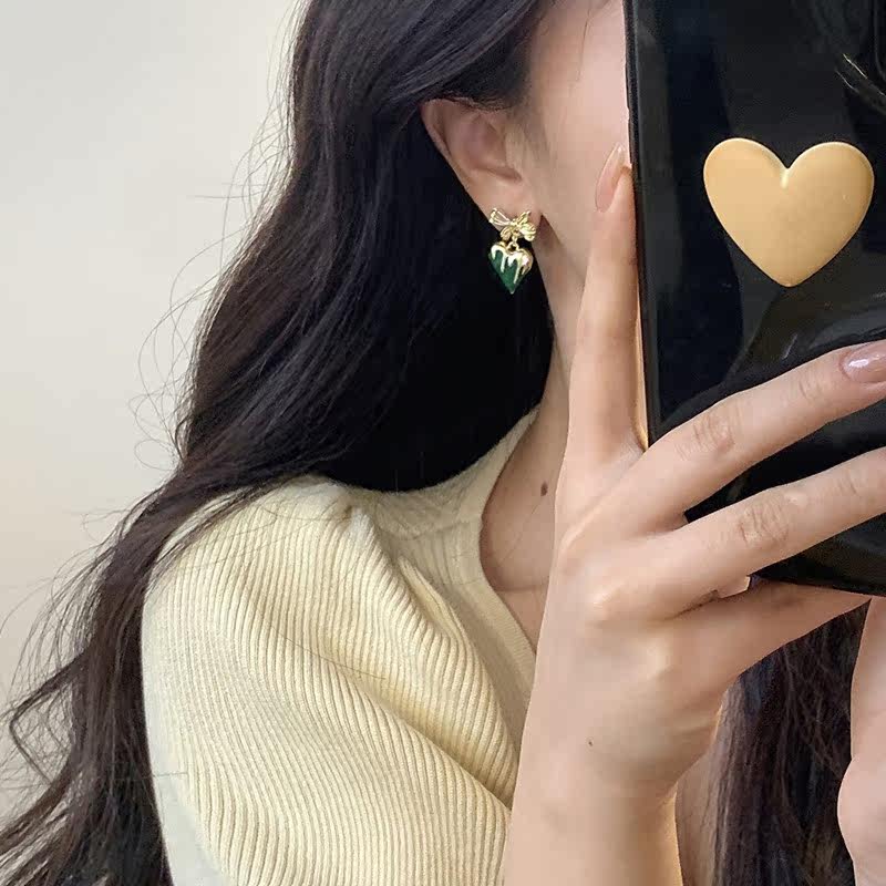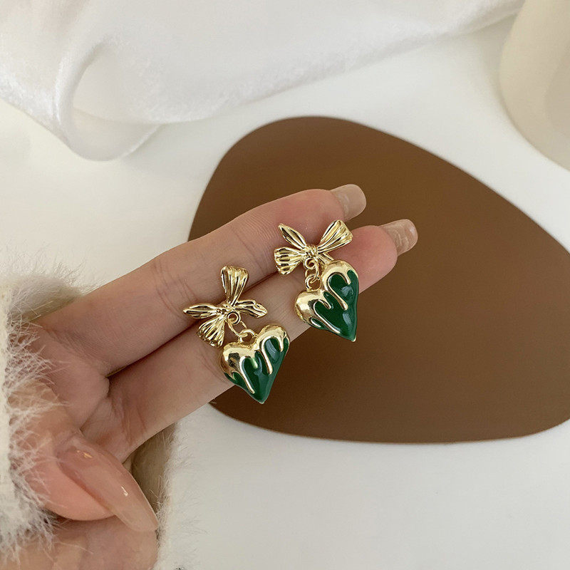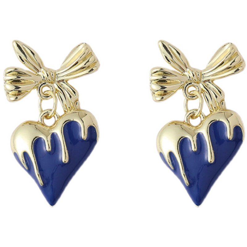 S925 Silver Needle Harbor Atmosphere Quality Butterfly Knots Love Earrings Women's Small Crowd Design Feel Drop Oil Ear Needle Advanced Sensation Earrings