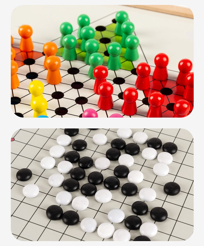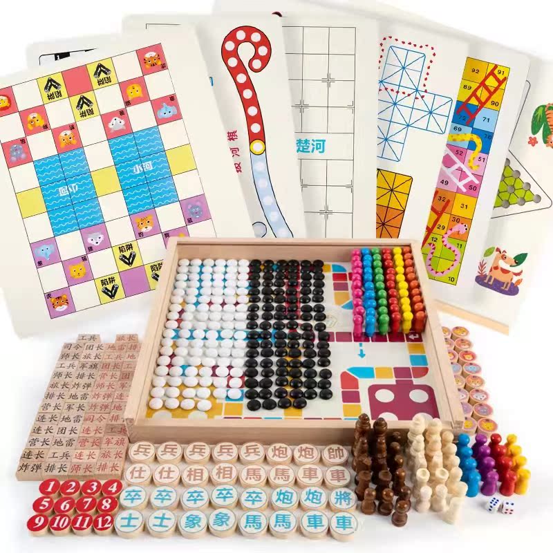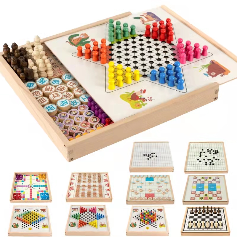 Multiple All-in-one Checkers Flying Chess Five Chess Fighting Beast Chess Game Multifunction Chess Children Students Puzzle Wooden Toys