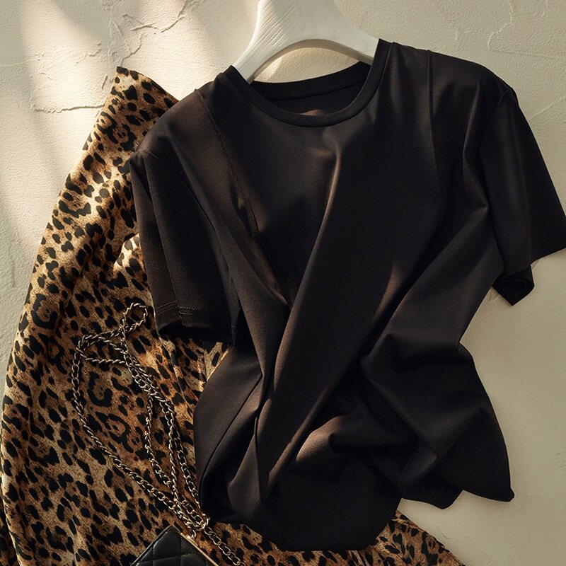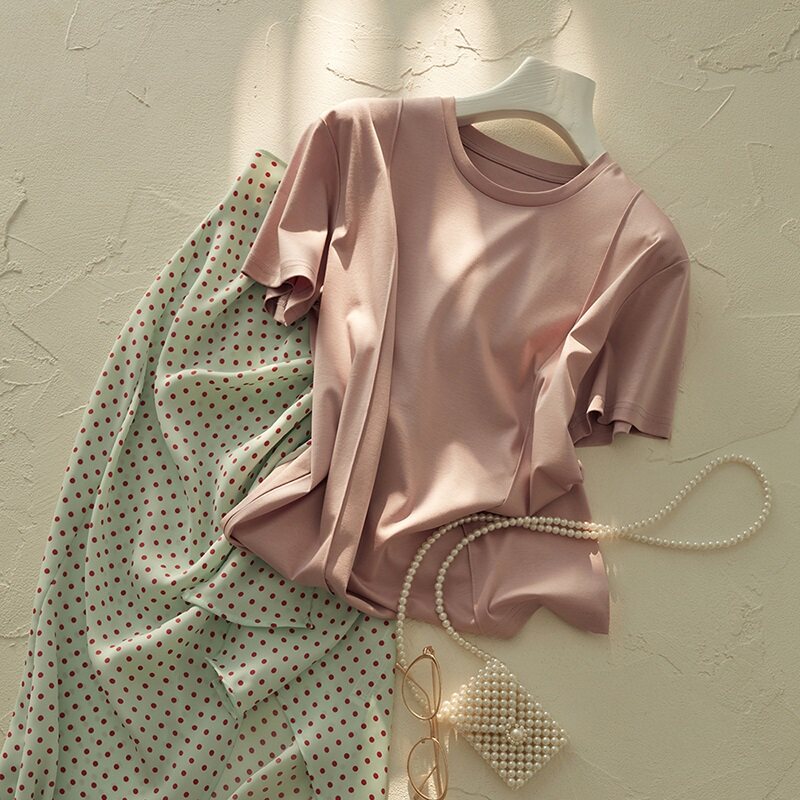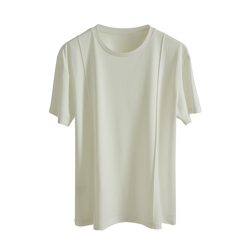 The style advanced sense round collar cover head short sleeve T-shirt woman 2023 new design sensation small crowd loose blouse