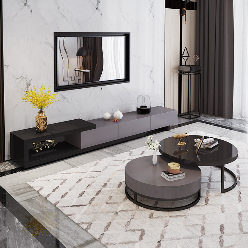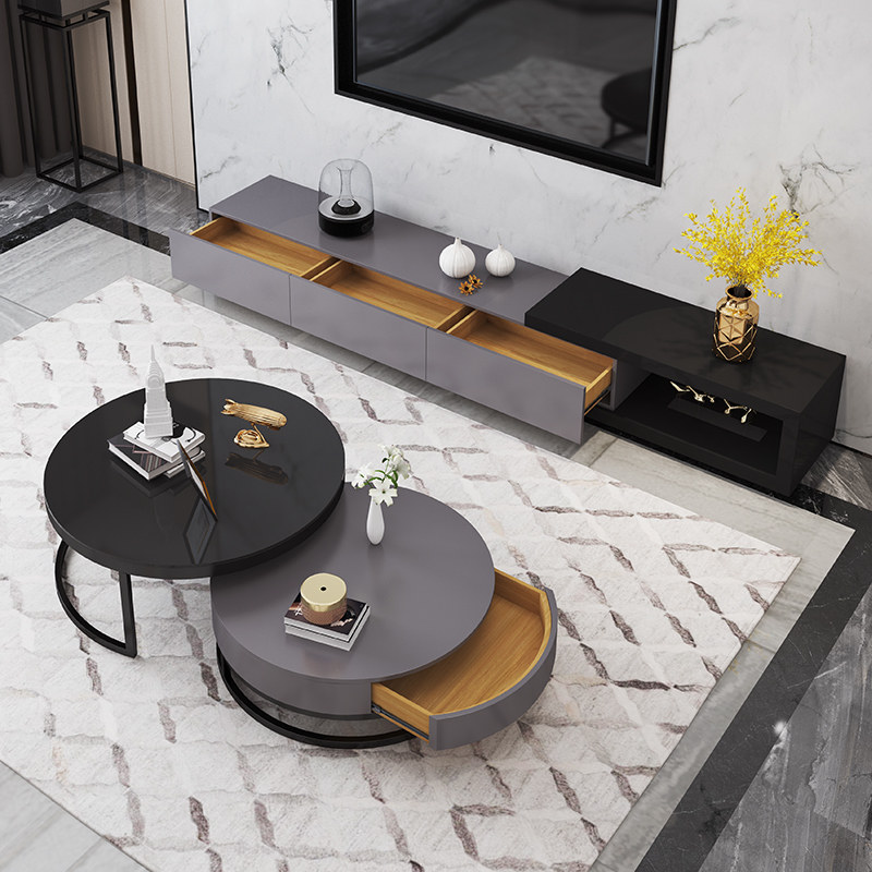 Round tea table (black ash section) B TV cabinet (black ash section) round tea table B TV cabinet (black ash section)