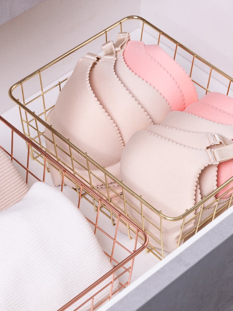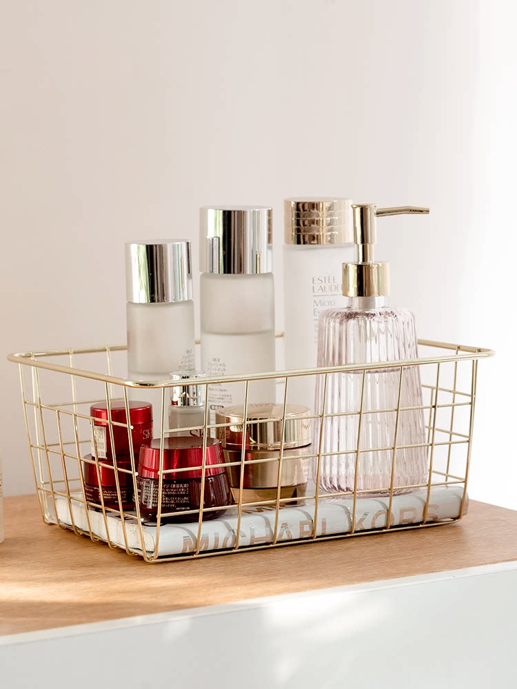 Nordic Minimalist Iron Art Hollowed-out Basket Containing basket Desktop Cosmetic Containing Box Japan-style Debris Disposal