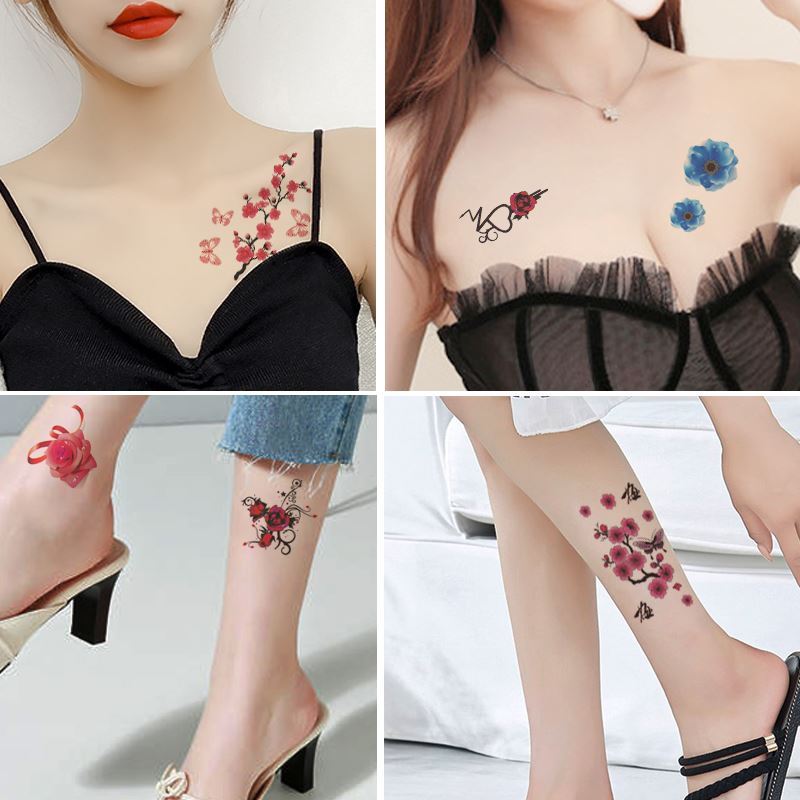 Rose tattoo stickers high-quality collarbone tattoo can not fall off lasting waterproof caesarean section to cover scars women's belly