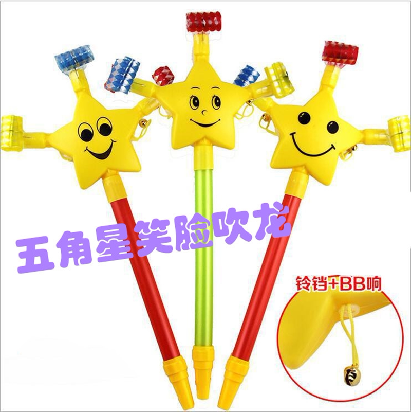 * Children's toy blowing a chuckle with a smiling face blow up a telescopic whistle a small trumpeter can give a birthday party to a small gift