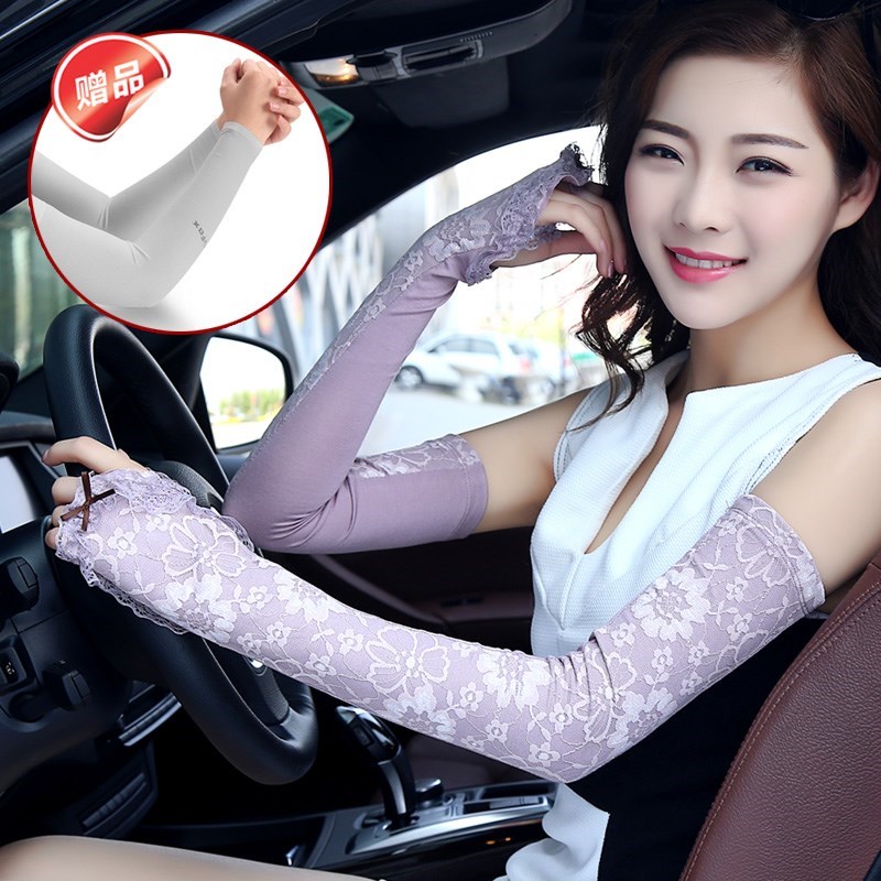Summer Arm Sleeve Long Version Drive Riding Ice Lace Sunscreen Gloves Female Spring Autumn Slim resistant UV
