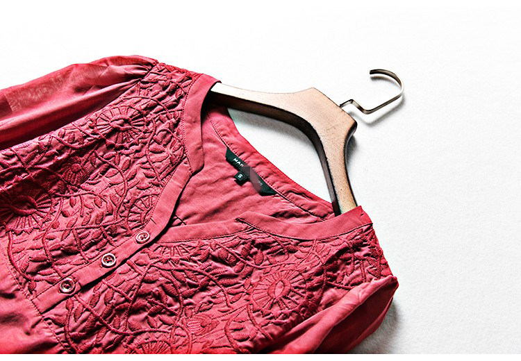 Silk shirt women's summer new OL mulberry silk slim top design sense niche mid-sleeve high-end embroidery shirt