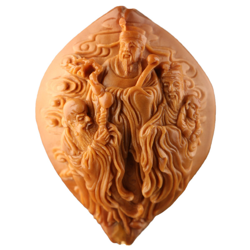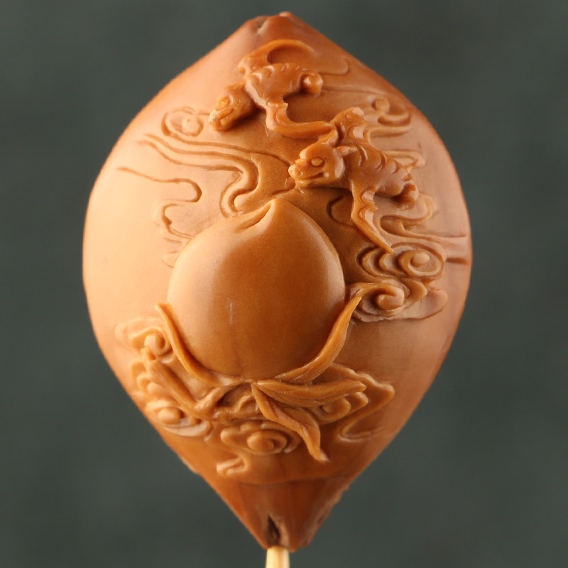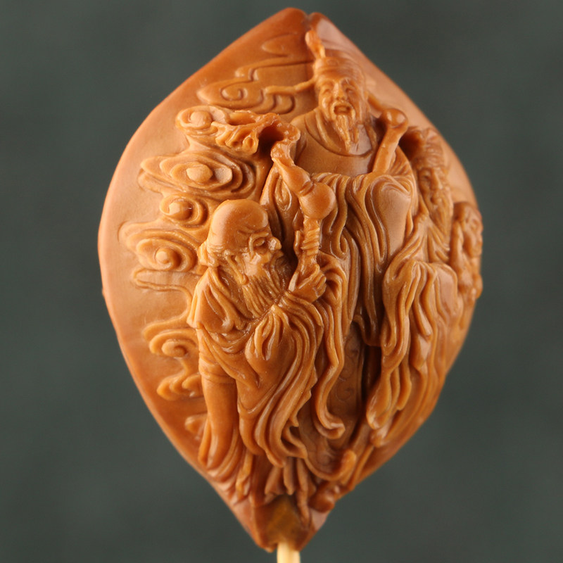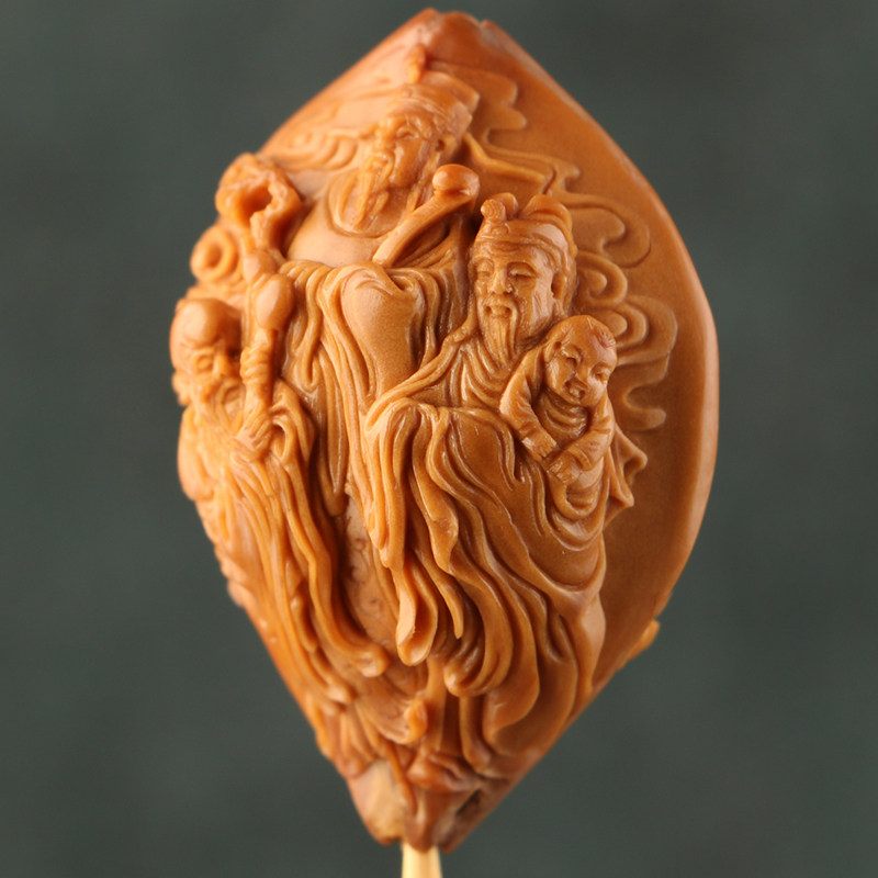 2 7x3 7cm (fu green shou) Ma Yuehui works olive nuclear sculpted four flowers old oil nuclear single seed pendant