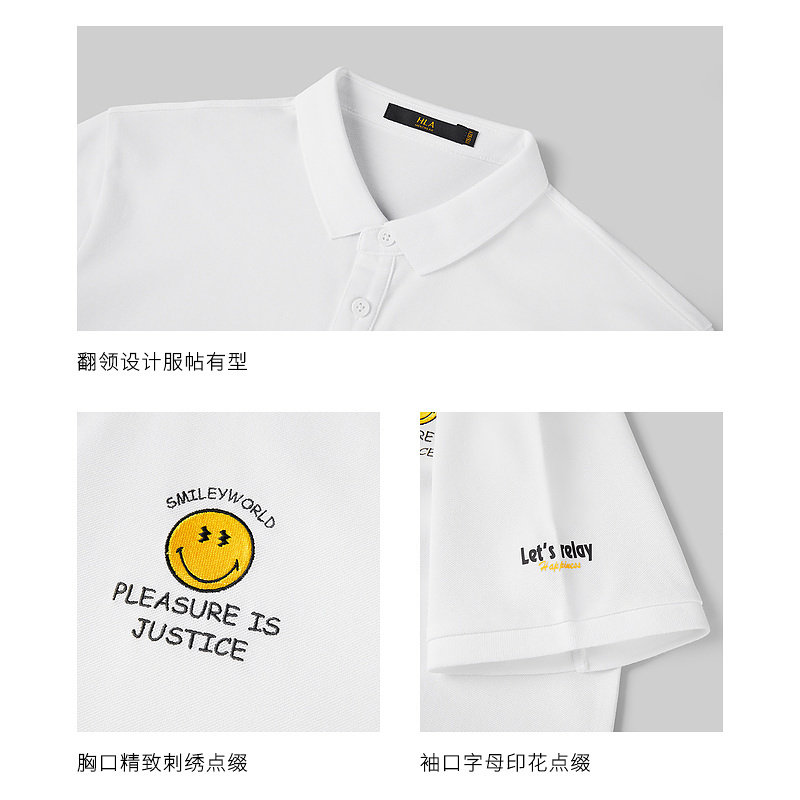 HLA Heilan House SmileyWorld Series Short sleeves POLO2022 Summer New Ice Cotton Embroidered Blouse