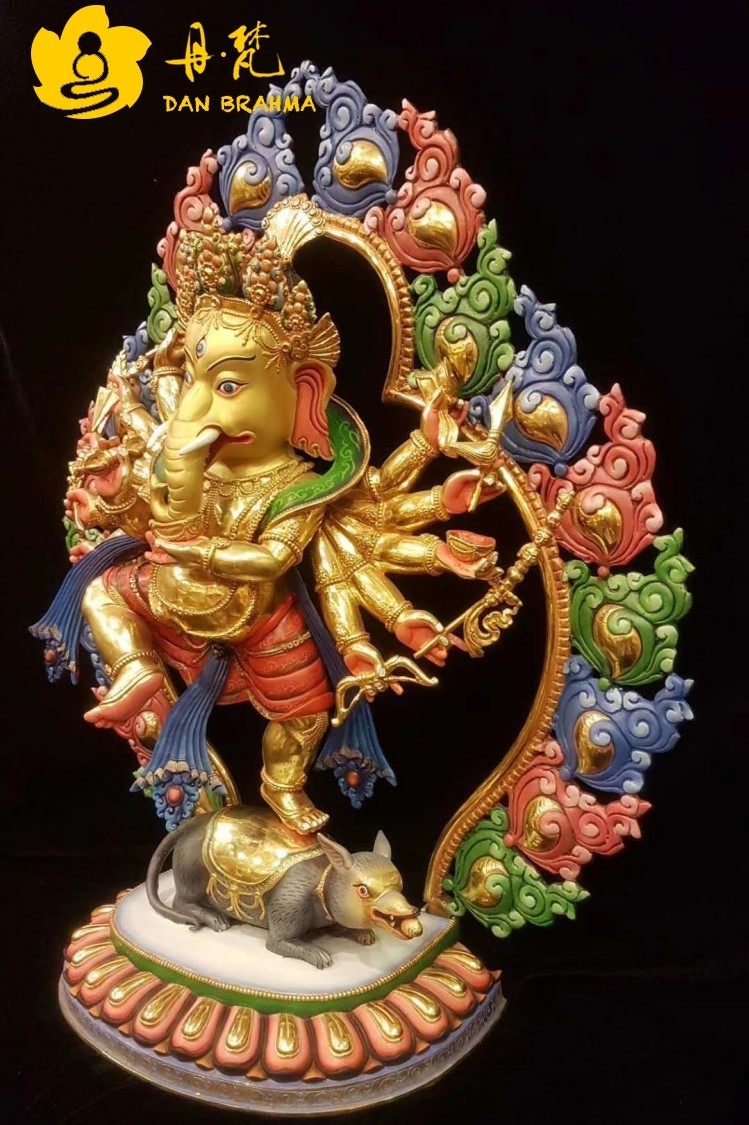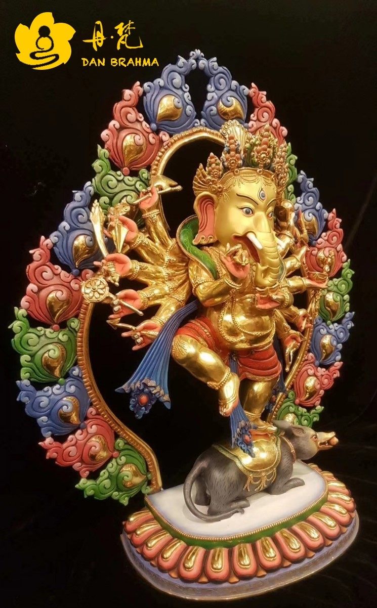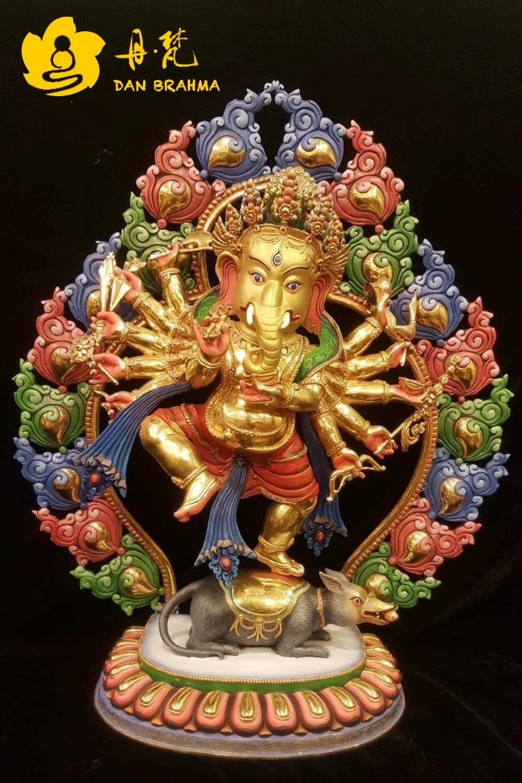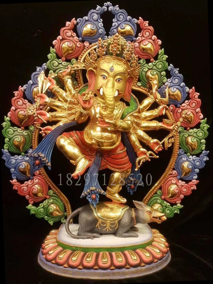 Elephant-nose chaeses Buddhist statues of Nepal Sakya ethnic group full-law gold painted red elephant-head Wang Caihong Bronze Sculpture 50cm