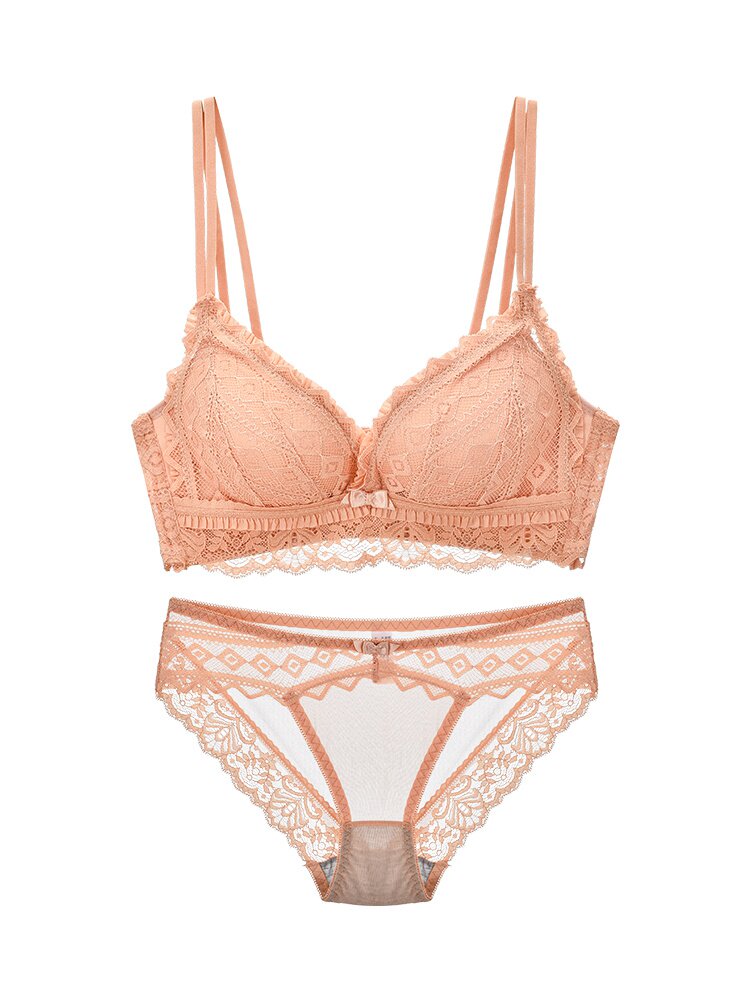 Day Ensemble Teenage Girl Small Breasts Poly Underwear Slim strap No steel ring Adjusted Sexy Lace Beauty Back Lingerie Suit
