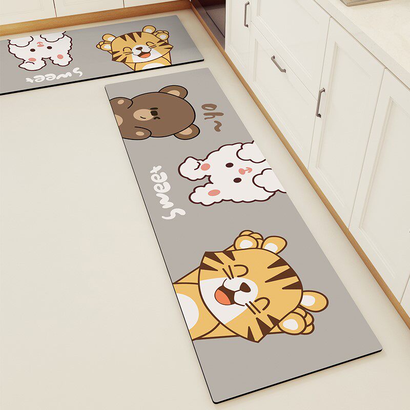 Cartoon kitchen floor mats non-slip and anti-fouling can be wiped disposable foot pads household water-absorbing quick-drying can be cut carpet