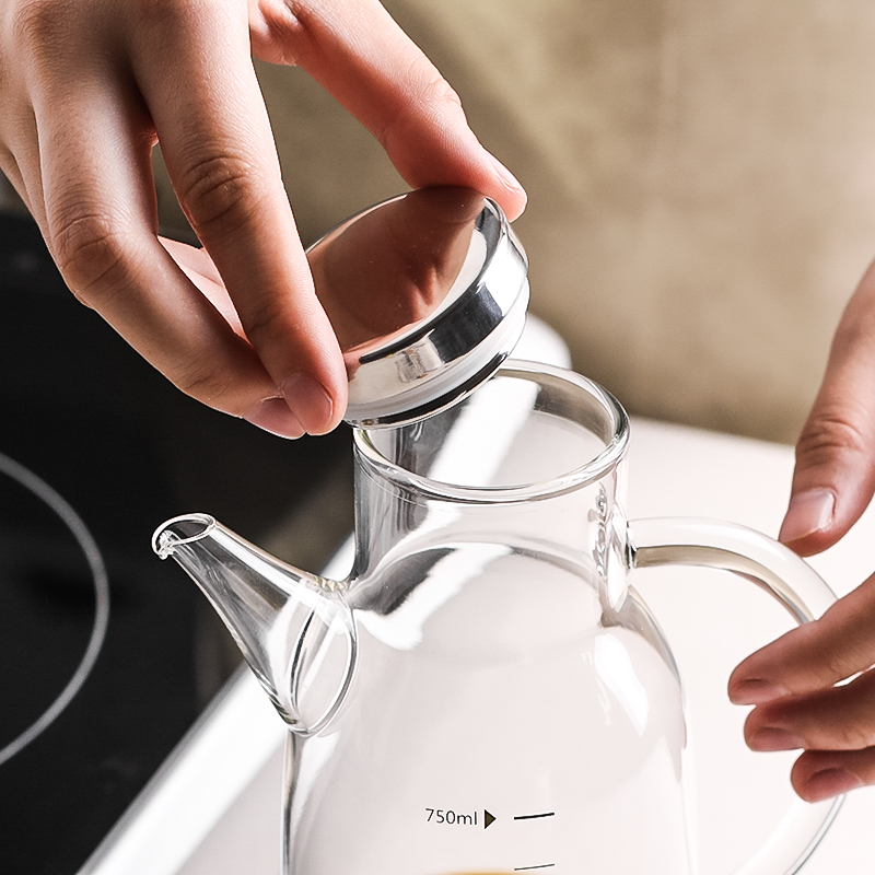 Kawashima House glass oil pot oil cans Home Kitchen European style No oil spill transparent oil bottle glass anti-leaking oil tank