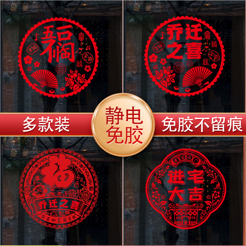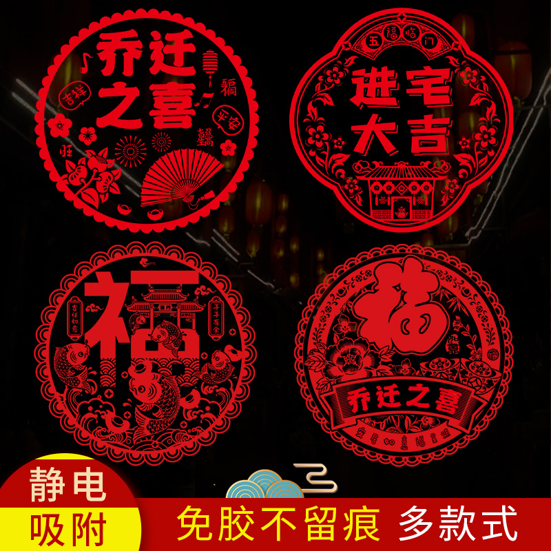 Window Flower electrostatic stickup Fusion character Qiao relocating the new Residence Joy Glass Door with wall Cut paper window Moving into the home Ritual Supplies