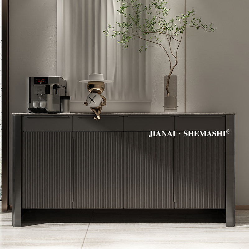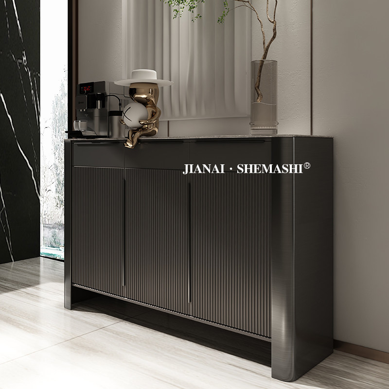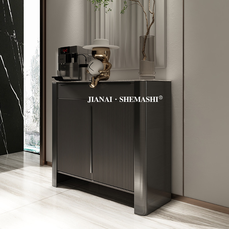 Italian minimalist solid wood shoe cabinet light luxury wind rock board porch cabinet post-modern entrance door storage decorative partition cabinet