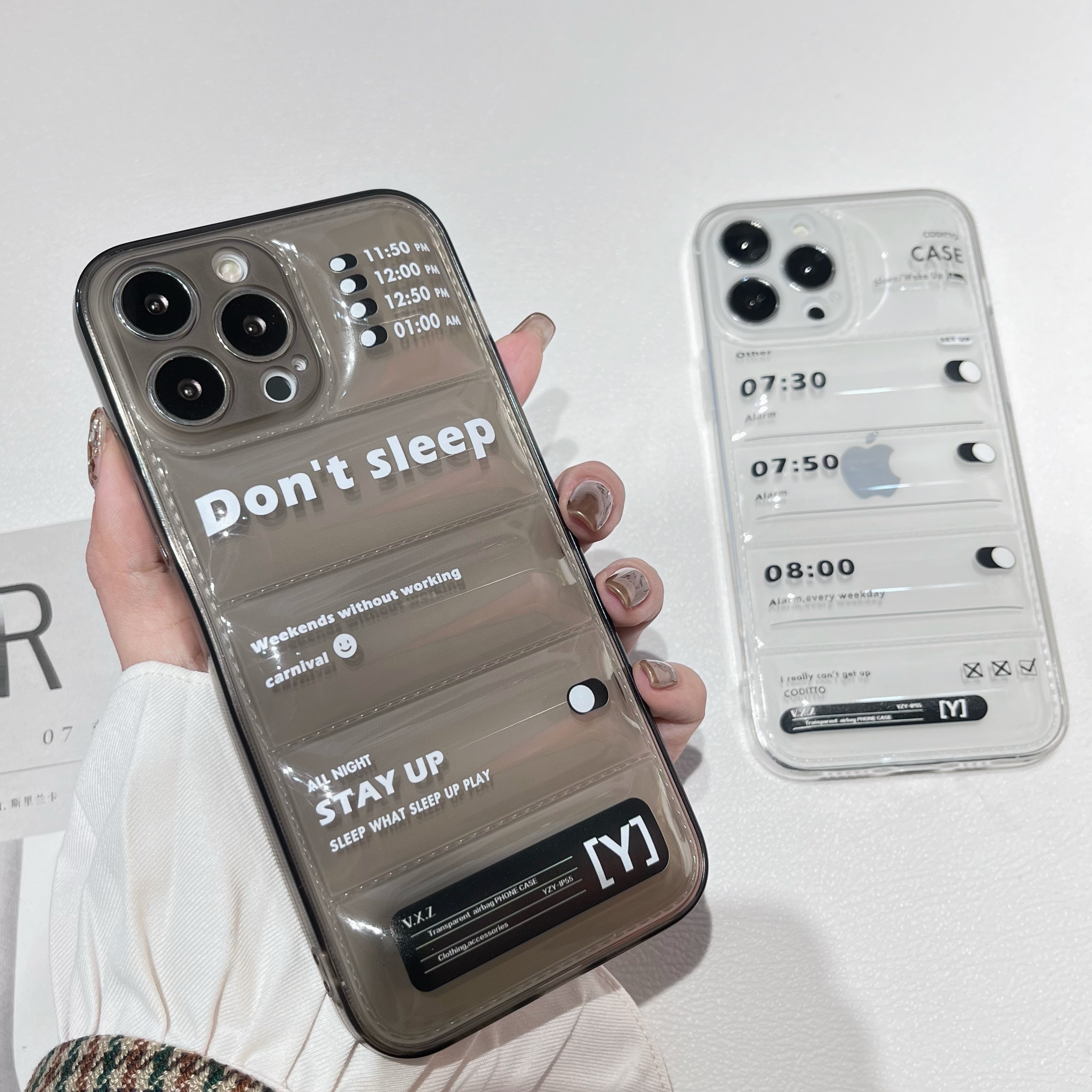 Down Jacket Shape TPU (Transparent Alarm Clock) (GOOD) Down Jacket Shape TPU (Transparent Alarm Clock) (Don·t) Down Jacket Shape TPU (Transparent Alarm Clock) (CA