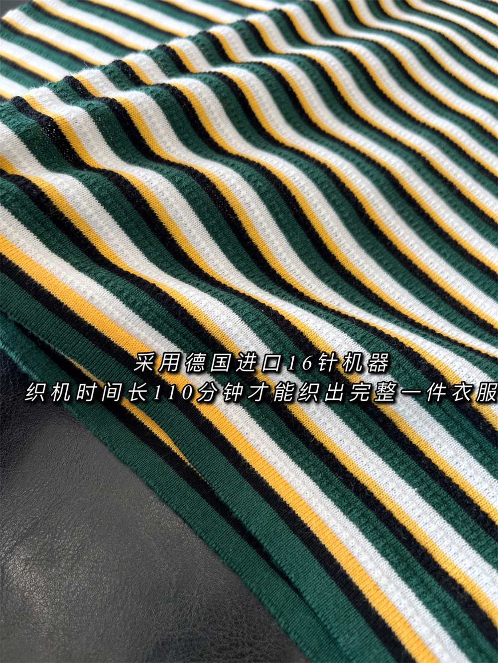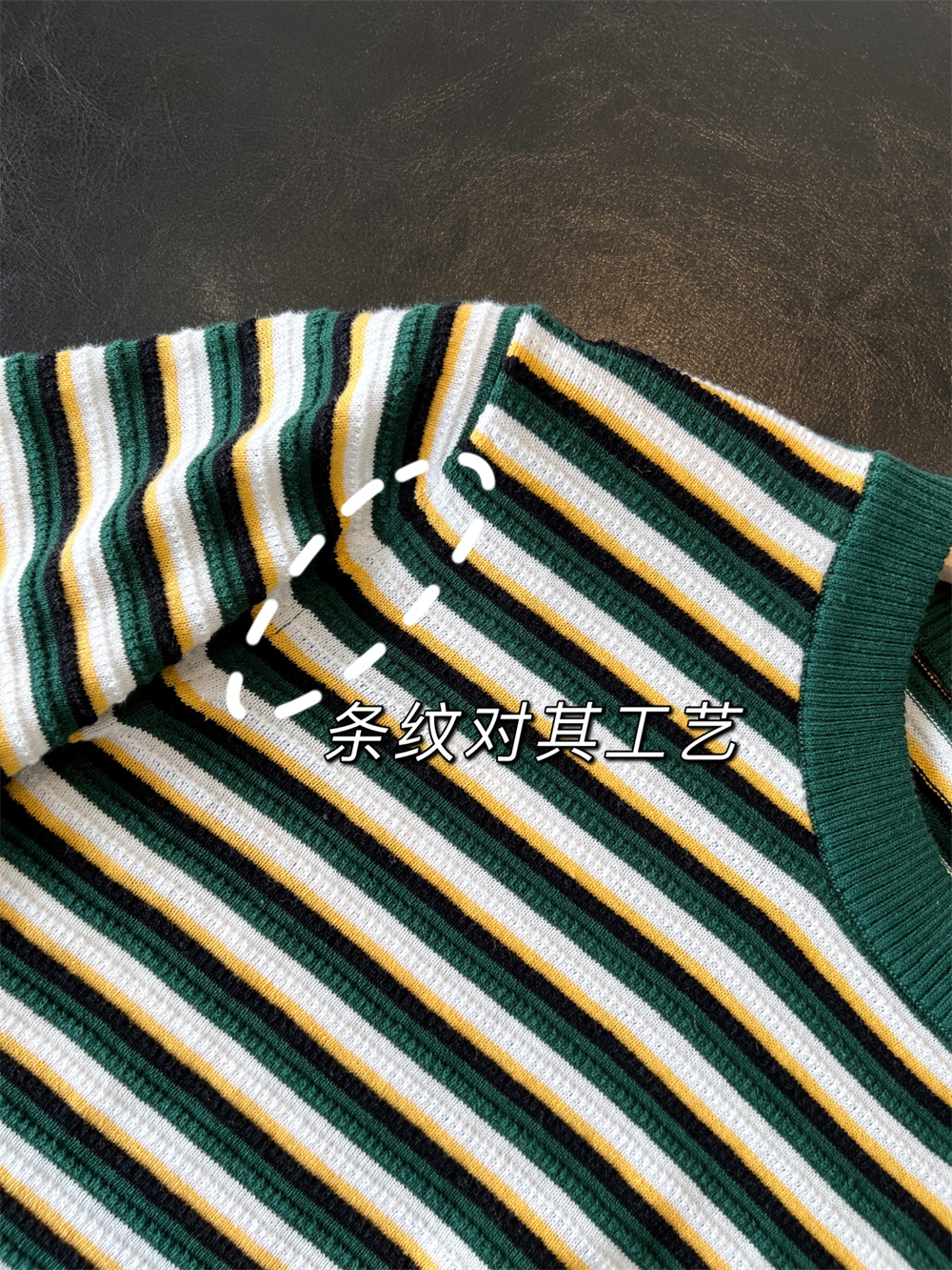 2022 Collision Color Salt Ensemble Sea Soul Shirt High-end Display White Green Striped Blouse Design Sensation Knit Cardigan Short Sleeve T-Shirt Woman